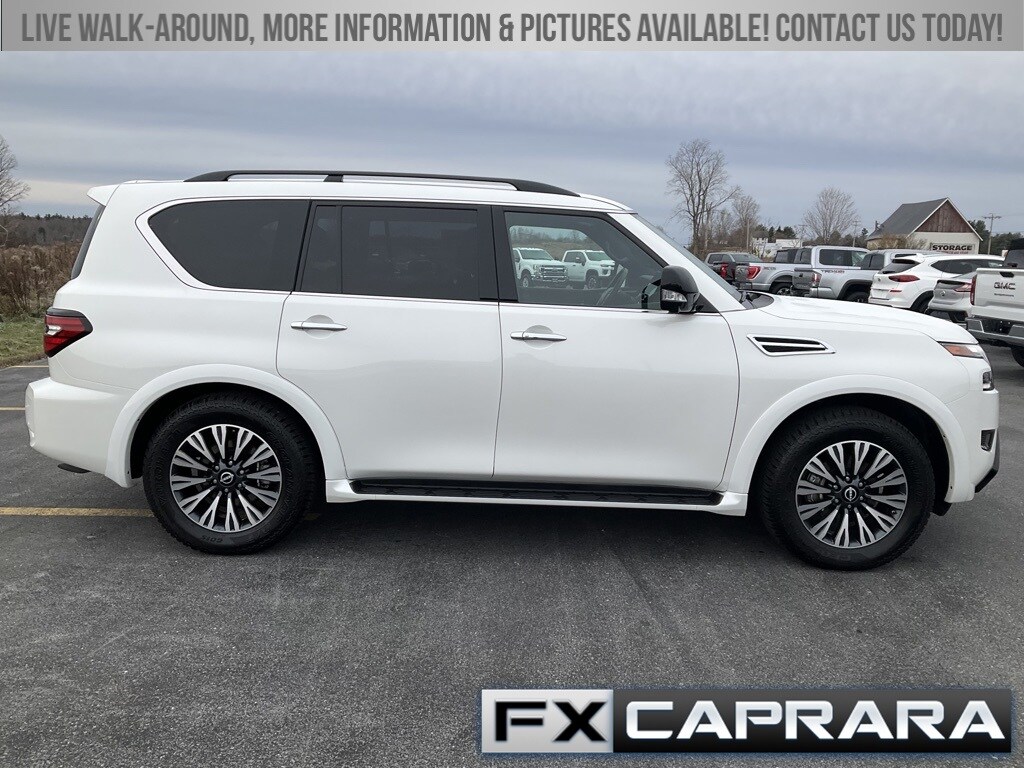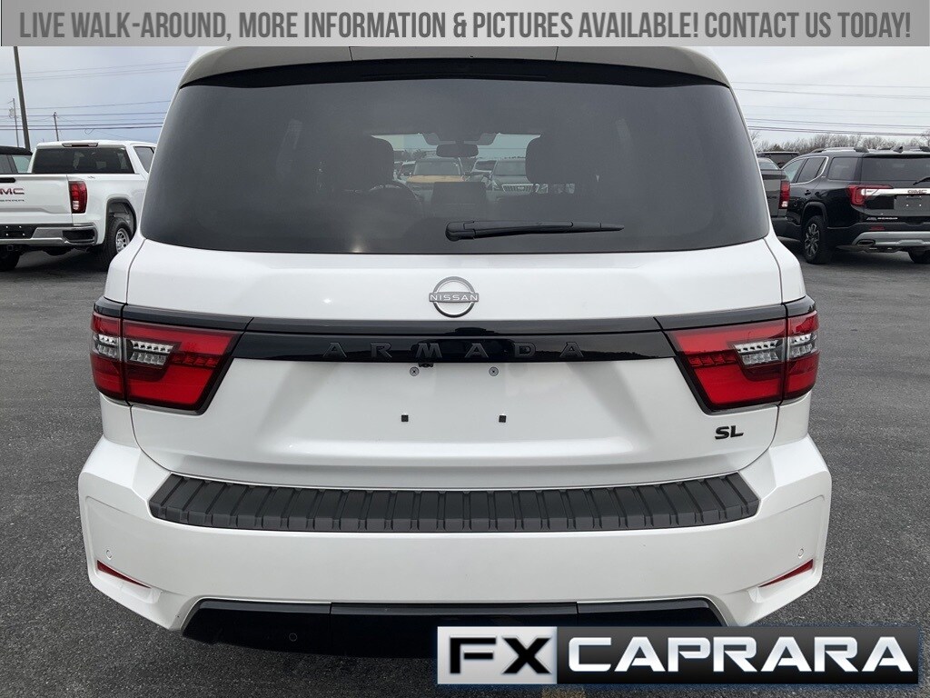 Odometer is 45231 miles below market average! Clean Carfax. White 2023 Nissan Armada SL 4D Sport Utility 4WD 7-Speed Automatic 5.6L V8 DOHC 32V LEV3-ULEV125 400hp. The Caprara family first opened our dealership doors 50 years ago and has proudly been a presence in Jefferson County, St. Lawrence County and the surrounding area through the years. When you visit our family-owned and operated dealership our team aims to make you feel right at home. Visit us for yourself to become a part of the FX Caprara family! 4WD. A negotiable administration fee, up to $170, may be added to the price of the vehicle.