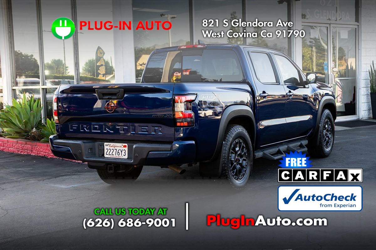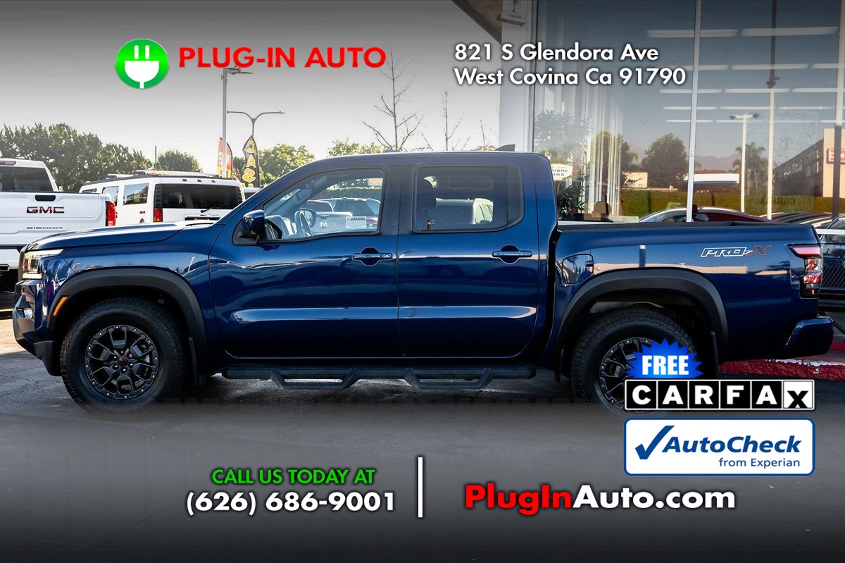 The Carfax 1-Owner 2023 Nissan Frontier Crew Cab 4x2 PRO-X Auto offers an impressive blend of utility and style, making it an ideal choice for both work and play. Dressed in an eye-catching Deep Blue Pearl exterior, this truck is sure to turn heads on the road. Inside, the Charcoal w/Lava Red interior provides a bold yet sophisticated look, combining comfort and functionality for a premium driving experience. Under the hood, the 3.8L 6-cylinder engine ensures potent performance and smooth handling, allowing you to tackle daily commutes or weekend adventures with ease. This Frontier is further enhanced by the [p02] PRO-X Premium Package that includes a range of upgrades designed to elevate your driving experience. The [k02] PRO Convenience Package adds practical elements for everyday functionality, ensuring both driver and passengers enjoy superior comfort and convenience. The [v02] Technology Package equips the vehicle with advanced tech features to keep you connected and secure on the move. Off-road style step rails [f93] lend a rugged look while providing easier access to the cabin. For added security, the [f96] Electronic Tailgate Lock ensures your cargo stays safe. In the Nissan Frontier Crew Cab 4x2 PRO-X Auto, adventure awaits at every turn, blending remarkable style with exceptional performance.