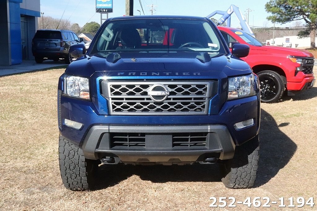 2023 Nissan Frontier SV Deep Blue Pearl. Autocheck Accident Free, no haggle price, one owner, all routine maintenance up to date, Bluetooth, AndroidTM Auto/Apple Carplay. TO KEEP YOU SAFE, WE DELIVER! Buy online-text-email-chat-phone and we will deliver your next vehicle to your door! From our sales floor to your door! It's that easy! From the Outer Banks to Raleigh to Charlotte to Boone and everywhere in between. It's time to save the LBJ way! Compare us to Capital Chevrolet, Don Bulluck, Doug Henry, Hurbert Vester Chevrolet, Deacon Jones or any other dealer! Open 24/7 at www.lbjchevroletinc.com.