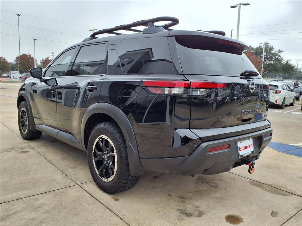Gillman's Lifetime Engine Warranty lasts as long as you own your vehicle - free with the Gillman Pre-Owned Promise. If the vehicle isn't right for you, return it in purchase condition within 2 days or 200 miles as part of our Happy-Driving Guarantee. Valid only are vehicles under 90,000 miles and less than 7 years old. Experience adventure in style with this Black 2023 Nissan Pathfinder Rock Creek AWD SUV. Designed for both rugged trails and daily commutes, it features a powerful 3.5L V6 engine and 9-speed shiftable automatic transmission with On-Demand AWD. Enjoy comfort and convenience with heated front seats, leatherette upholstery, tri-zone automatic climate control, and a 7-inch instrument cluster paired with an 8-inch infotainment screen with Apple CarPlay and Android Auto. Stay safe with advanced systems like Front/Rear Automatic Emergency Braking, Lane Keeping Assist, Blind Spot Monitoring, Rear Cross Traffic Alert, and a Surround View Camera System. The off-road-tuned suspension, Class III trailer hitch, and black roof rails make it ready for outdoor adventures, while adaptive cruise control and NissanConnect smart device integration keep you connected and at ease on every drive. Don't miss your chance to own this versatile, family-ready SUV-schedule your test drive today!