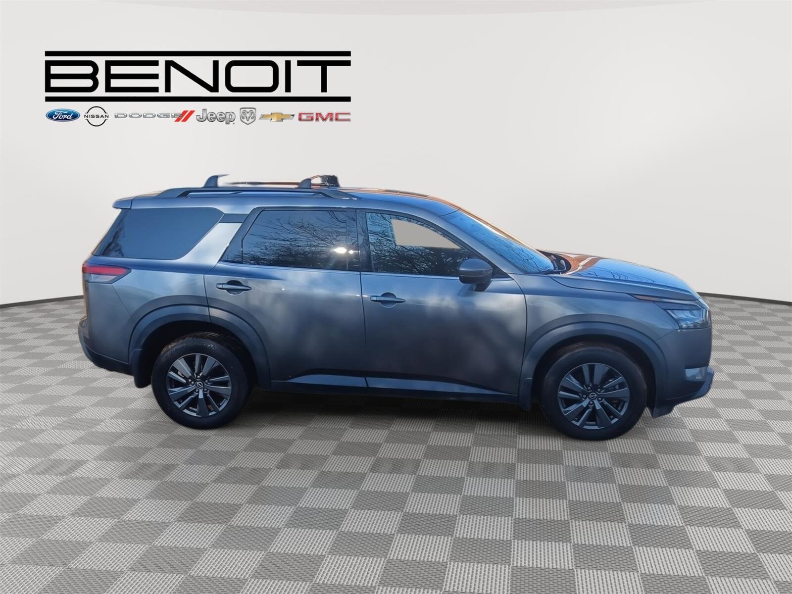 Rev up your engines, folks, because we've got the used cars of your dreams at Benoit Motors! Our lot is jam-packed with the coolest rides around, from sleek sports cars to rugged SUVs. But that's not all - we've got financing available for everyone, so you can hit the road in style without breaking the bank. And all of our used cars go through a rigorous 120-point inspection, so you know you're getting a reliable ride that's built to last. At Benoit Motors, we're the go-to dealer for all your used car needs. Our friendly and knowledgeable staff are here to help you find the perfect car for your lifestyle and budget. So come on down and test drive your dream ride today! But be warned - once you get behind the wheel of one of our used cars, you won't want to leave without it. So what are you waiting for? Come see us at Benoit Motors and let the good times roll! 2023 Nissan Pathfinder SV Gun Metallic with Charcoal Interior.