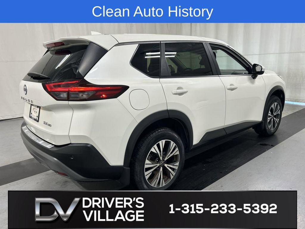 2023 Nissan Rogue SV AWD CVT with Xtronic 1.5L I3 Turbocharged DOHC 12V LEV3-ULEV50 201hp. Clean Autocheck, one owner, all-wheel drive, remote starter, blind spot warning, Apple CarPlay, Android Auto, AWD, brake assist, electronic stability control, power driver seat, power steering, power windows, rear parking sensors, remote keyless entry, split folding rear seat, steering wheel mounted audio controls. Pearl White Tricoat. 28/35 City/Highway MPG.