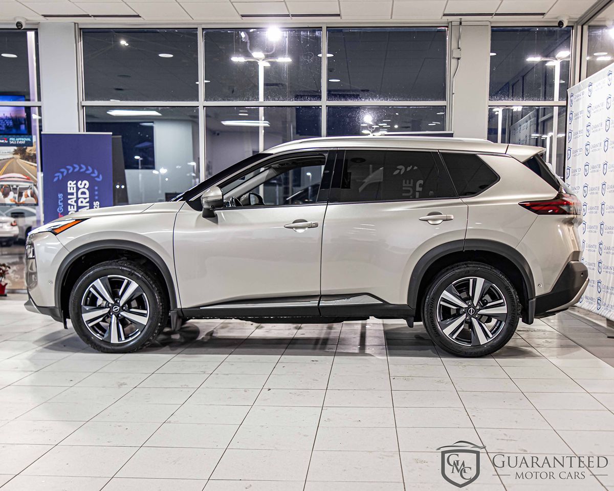 The 2023 Nissan Rogue AWD Platinum exudes sophistication and modernity with its stunning Champagne Silver Metallic exterior, effortlessly catching eyes on every street. Its Charcoal interior provides a sleek and cozy environment for passengers, enhancing the driving experience whether you're embarking on a short commute or a long-distance journey. Under the hood, the Rogue is powered by an efficient 1.5L 3-cylinder engine, perfectly paired with an All Wheel Drive drivetrain to ensure seamless performance across a variety of terrains. This high-end SUV is packed with advanced technology and safety features designed to elevate your driving experience. Active cruise control and lane keep assist work harmoniously to provide a relaxed and attentive drive on the open road. Meanwhile, the inclusion of a panoramic sunroof allows occupants to connect with the world outside, creating an airy and open atmosphere within the cabin. Equipped with a blind spot monitor, forward collision warning, and parking assist, the Rogue offers peace of mind, ensuring that every journey is as safe as it is enjoyable. For enhanced convenience, the Rogue boasts a hands-free liftgate and heated seats, making it perfect for colder climates. The Platinum Premium Package further augments the vehicle's luxury credentials, adding a touch of sophistication with floor mats and a 2-piece cargo area protector for superior utility. Inside, illuminated kick plates bolster its premium feel, while the frameless rearview mirror with universal remote enhances convenience and style. Exterior features like black splash guards protect the vehicle while making a bold statement. Bluetooth connectivity ensures you remain effortlessly connected, while lane departure warning safeguards your travels. With the 2023 Nissan Rogue AWD Platinum, every drive is a testament to comfort, technology, and elegance.