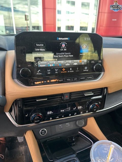 The 2023 Nissan Rogue Platinum offers advanced efficiency, premium comfort, and modern styling in a well-cared-for one-owner compact SUV. This 4D Sport Utility is finished in sleek Super Black, giving it a sophisticated and upscale appearance. Power comes from the innovative 1.5L turbocharged 3-cylinder engine producing 201 horsepower, paired with a smooth CVT with Xtronic for responsive and efficient performance. The FWD drivetrain enhances fuel economy while delivering confident everyday drivability. Inside, the Platinum trim features a luxurious tan leather interior, creating a refined and comfortable cabin with premium materials and thoughtful design throughout. Known for its advanced engineering and practicality, the vehicle provides a quiet, comfortable ride for commuting and road trips alike. With its one-owner history, premium features, and impressive efficiency, the 2023 Nissan Rogue Platinum is an excellent choice for drivers seeking a modern, well-equipped compact SUV.