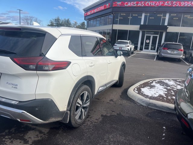 Jeff Wyler Eastgate Auto Mall is pleased to offer this charming 2023 Nissan Rogue Platinum in Pearl White Tricoat. Well equipped with: Platinum Premium Package (Heads-Up Display, Rear Heated Seats, and Tri-Zone HVAC), 10 Speakers, 19" Aluminum Alloy Wheels, 4-Wheel Disc Brakes, 5.604 Axle Ratio, ABS brakes, Air Conditioning, Alloy wheels, AM/FM radio: SiriusXM, Auto High-beam Headlights, Auto-dimming Rear-View mirror, Automatic temperature control, Black Splash Guards (Set of 4), Bose Premium Audio System, Brake assist, Bumpers: body-color, Chrome Rear Bumper Protector, Delay-off headlights, Driver door bin, Driver vanity mirror, Dual front impact airbags, Dual front side impact airbags, Electronic Stability Control, Emergency communication system: NissanConnect Services, First Aid Kit, Floor Mats w/2-Piece Cargo Area Protector, Four wheel independent suspension, Front anti-roll bar, Front Bucket Seats, Front Center Armrest, Front dual zone A/C, Front reading lights, Fully automatic headlights, Heated door mirrors, Heated Front Bucket Seats, Heated front seats, Heated steering wheel, Illuminated entry, Knee airbag, Leather steering wheel, Low tire pressure warning, Memory seat, Navigation system: NissanConnect Navigation, NissanConnect featuring Apple CarPlay and Android Auto, Occupant sensing airbag, Outside temperature display, Overhead airbag, Overhead console, Panic alarm, Passenger door bin, Passenger vanity mirror, Power door mirrors, Power driver seat, Power Liftgate, Power moonroof, Power passenger seat, Power steering, Power windows, Quilted Semi-Aniline Leather Seat Trim, Radio data system, Radio: AM/FM NissanConnect w/Navigation, Rear anti-roll bar, Rear reading lights, Rear seat center armrest, Rear side impact airbag, Rear window defroster, Rear window wiper, Remote keyless entry, Security system, Speed control, Speed-Sensitive Wipers, Split folding rear seat, Spoiler, Steering wheel mounted audio controls, Tachometer, Telescoping steering wheel, Tilt steering wheel, Traction control, Trip computer, Turn signal indicator mirrors, and Variably intermittent wipers. Clean CARFAX. Ask about available certifications. Used vehicles 10 years of age or newer with less than 100,000 miles are eligible for the Wyler Assurance Program, but eligible vehicles must pass our reconditioning process and multi-point inspection. Provided the vehicle passes inspection, vehicles will be eligible for the 6 month/6,000 mile limited warranty. The 6 month/6,000 mile limited warranty is NOT available on AS-IS vehicles, wholesale vehicles, lease buyback/pass-thru vehicles or un-inspected vehicles. Note that this program can also apply to vehicles where the remaining factory coverage is less than 6 months or 6,000 miles. Please check the Federal Trade Commission (FTC) Buyers guide on the vehicle for full details as to whether or not warranty coverage may apply. Contact Dealer for additional details. The Wyler Assurance 6 month/6,000 Mile limited warranty ends 6 months from the date of the Retail Purchase Agreement (BUYERS ORDER) or when the vehicle's odometer registers 6,000 additional miles to the mileage listed on the BUYERS ORDER, whichever comes first. Your Deductible - The warranty holder on your contract pays the first $100 of each covered repair.