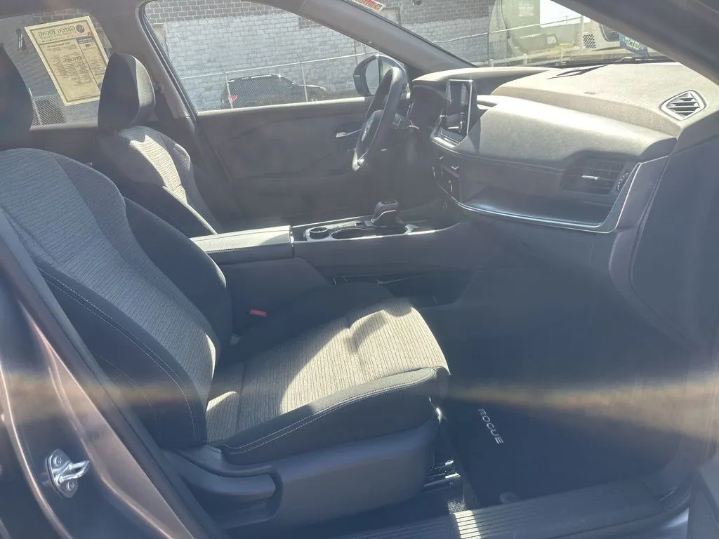 The 2023 Nissan Rogue SV offers a compelling combination of style, technology, and versatility, making it an ideal choice for daily commutes and weekend adventures. With just under 29,000 miles, this used SUV has been well maintained and is ready to deliver reliable performance. Its striking Gun Metallic exterior pairs seamlessly with a refined Charcoal interior, creating an elegant yet practical look. Powered by a turbocharged 1.5-liter three-cylinder engine generating 201 horsepower and 225 lb-ft of torque, the Rogue SV provides a smooth, efficient ride with up to 35 mpg on the highway. Equipped with a CVT with Xtronic transmission and all-wheel drive, this vehicle handles various road conditions with confidence. The SUV features four doors and seating for five, making it perfect for families or those who need flexible space. Inside, the Rogue SV is packed with advanced features designed to enhance convenience and safety. It includes adaptive cruise control for stress-free highway driving, Apple CarPlay for seamless smartphone integration, and a backup camera to aid parking. Safety is prioritized with blind spot monitoring, collision warning, cross traffic alert, and lane keep assist, ensuring peace of mind on every trip. Other amenities include keyless entry, push-button start, satellite radio readiness, and a Wi-Fi hotspot, keeping you connected and entertained wherever you go. Bluetooth connectivity and a six-speaker audio system further enhance the driving experience, while the 8-inch infotainment touchscreen offers intuitive control over your entertainment and navigation needs.