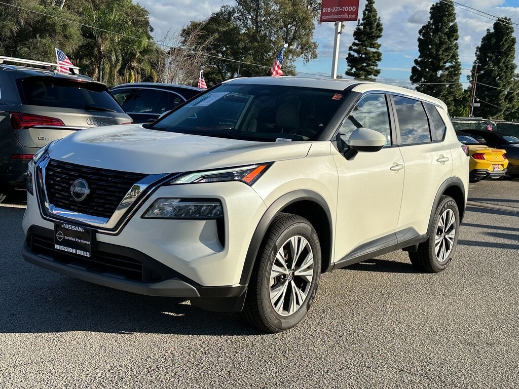 2023 Nissan Rogue Pearl White Tricoat SV 4D Sport Utility 30/37 City/Highway MPG CVT with Xtronic. Price does not include additional accessories. Each Nissan Certified Pre-Owned vehicle comes with the innovation and excitement you expect from Nissan. To that, we add a rigorous certification process and the peace of mind of a 7-year / 100,000 limited powertrain warranty and roadside assistance so that you can explore with confidence. Nissan of Mission Hills is your premier New and Used automotive dealership. Come experience a fun and seamless automotive buying experience. We serve all drivers including, but not limited to Mission Hills, Van Nuys, North Hills, Porter Ranch, Granada Hills, Glendale, Los Angeles, Simi Valley, Chatsworth and the entire San Fernando Valley. We always strive to deliver a first-class car-shopping experience. We make that possible by providing a stunning collection of vehicles, hassle-free financing and high-quality service and repairs. That's how we're able to serve as the one-stop shop for buying, financing and servicing your cars!