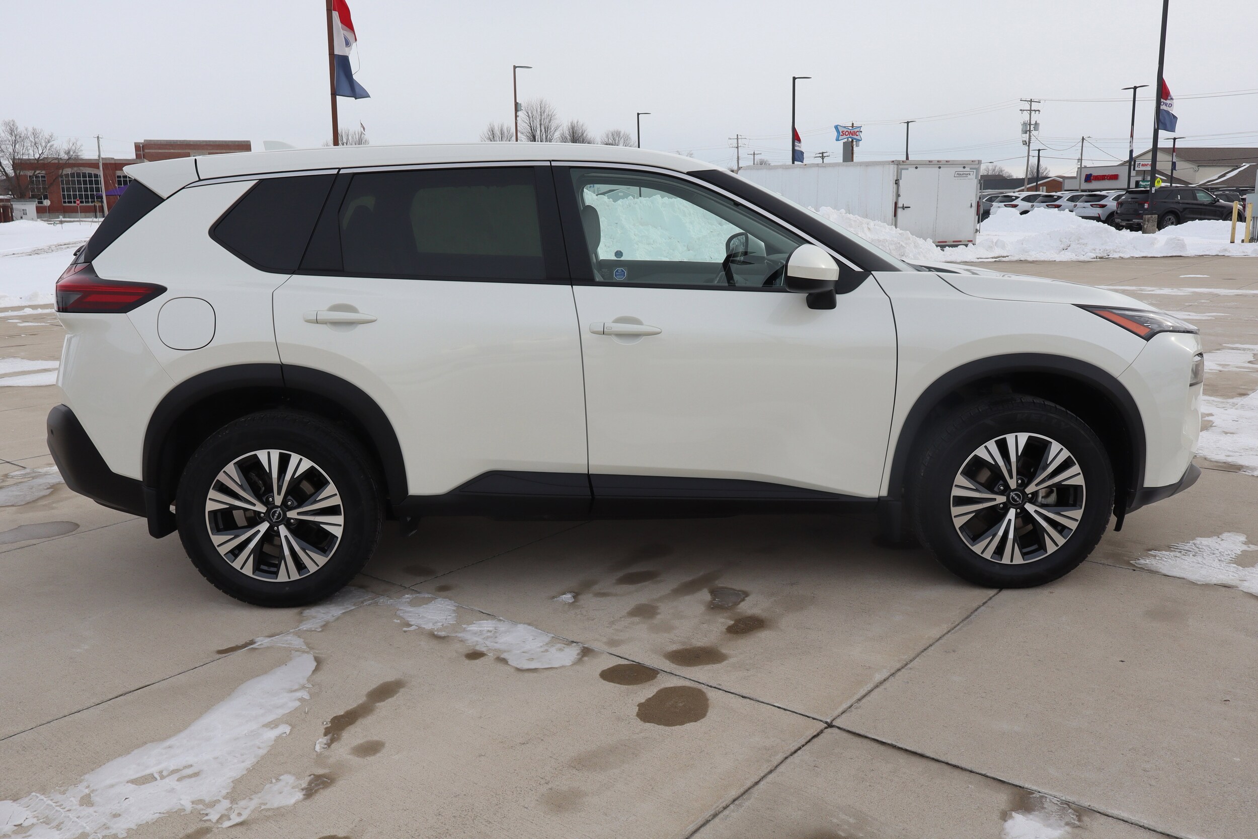 Recent Arrival! 2023 Nissan Rogue SV Pearl White Tricoat AWD CVT with Xtronic 1.5L I3 Turbocharged DOHC 12V LEV3-ULEV50 201hp. Odometer is 21461 miles below market average! 28/35 City/Highway MPG.