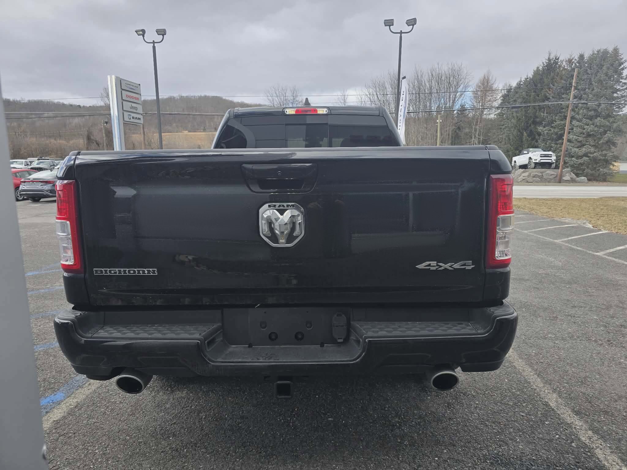 This one-owner, accident-free 2023 Ram 1500 Big Horn/Lone Star in Diamond Black Crystal Pearlcoat is a sharp, capable half-ton truck blending premium style with everyday versatility. Powered by the muscular HEMI 5.7L V8 with Multi Displacement VVT eTorque, paired with a smooth 8-speed automatic transmission and confident 4WD, it delivers strong performance, efficiency, and towing power for work or play. Fully serviced and ready to impress, it comes with a fresh Pennsylvania state inspection and a fresh oil change ensuring reliable driving from the first mile. The Sport Appearance Package and Big Horn Level 1 Equipment Group give it a sleek, aggressive look with black exterior mirrors, black interior accents, dual exhaust with black tips, body-color accents, 18" x 8" cast-aluminum painted wheels, and a chrome RAM grille badge. Practical upgrades include a Class IV receiver hitch, MOPAR spray-in bedliner, MOPAR deployable bed step, 4 adjustable cargo tie-down hooks, pick-up box lighting, rear power sliding window with defroster, remote start system, and trailer brake control for effortless towing. Inside, the refined cabin features deluxe cloth bucket seats, heated front seats, heated steering wheel, 8.4" Uconnect 5 touchscreen with Apple CarPlay/Android Auto, navigation-ready capability, 4G LTE Wi-Fi hotspot, full-length floor console, rear 60/40 folding seat with center armrest, and 2nd row in-floor storage bins. If you're looking for a stylish, well-equipped Ram 1500 with V8 power, premium features, and true 4WD capability in a bold black finish, this Big Horn/Lone Star is the perfect choice—come see it and take it for a test drive today!
