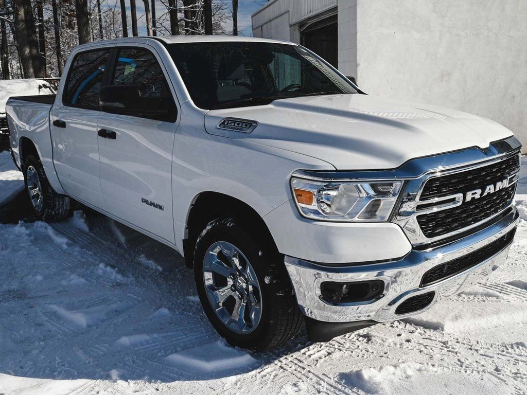 2023 Ram 1500 Big Horn/Lone Star Recent Arrival! One Owner, Clean Carfax, 1500 Big Horn/Lone Star, 4D Crew Cab, 3.6L V6 24V VVT, 8-Speed Automatic, 4WD, Bright White Clearcoat, Black w/Deluxe Cloth Bucket Seats, 4-Wheel Disc Brakes, 48V Belt Starter Generator, 4G LTE Wi-Fi Hot Spot, 8.4" Touchscreen Display, 9 Amplified Speakers w/Subwoofer, ABS brakes, Air Conditioning ATC w/Dual Zone Control, AM/FM radio, Apple CarPlay, Auto-Dimming Exterior Driver Mirror, Auto-Dimming Rear-View Mirror, Big Horn Badge, Big Horn Level 2 Equipment Group (DISC), Black Premium Power Mirrors, Blind Spot & Cross Path Detection, Bluetooth Handsfree Phone & Audio, Brake assist, Bucket Seats, Center Console Parts Module, Class IV Receiver Hitch, Cluster 7.0" TFT Color Display, Convex Wide-Angle Exterior Mirror Insert, Cruise control, Dual front impact airbags, Dual front side impact airbags, Electric Shift-On-Demand Transfer Case, Electronic Stability Control, Exterior Mirrors Courtesy Lamps, Exterior Mirrors w/Heating Element, Exterior Mirrors w/Supplemental Signals, Front Fog Lamps, Front wheel independent suspension, Full Length Floor Console, Fully automatic headlights, Global Telematics Box Module (TBM), Google Android Auto, GPS Antenna Input, GPS Navigation, Heated Front Seats, Heated Steering Wheel, Illuminated entry, Integrated Center Stack Radio, Integrated Voice Command w/Bluetooth, Leather steering wheel, LED Taillamps, Low tire pressure warning, Media Hub w/2 Charge Only USBs, Occupant sensing airbag, Overhead airbag, Panic alarm, ParkSense Rear Park Assist w/Stop, Parkview Rear-Back-Up Camera System (No), Power Adjustable Pedals (No), Power Adjustable Pedals (No), Power door mirrors (No), Power-Folding Mirrors (No), Quick Order Package 23Z Big Horn (No), Radio data system (No), Radio: Uconnect 5 W w/8.4" Display (No), Rear Power Sliding Window (No), Rear step bumper (No), Rear Window Defroster (No), Remote keyless entry (No), Remote Start System (No), Security Alarm (No), SiriusXM Satellite Radio (No), Telescoping steering wheel (No), Tilt steering wheel (No), Traction control system (No). Bright White Clearcoat 2023 Ram 1500 Big Horn/Lone Star 4WD 8-Speed Automatic 3.6L V6 24V VVT. Odometer is 7594 miles below market average! Feel free to call the dealership at 732-798-6678.