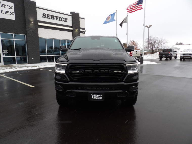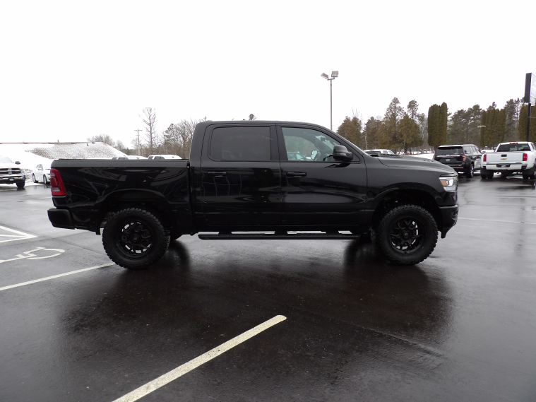 2023 Ram 1500 Laramie Crew Cab 4x4. Engine: 5.7L V8 HEMI MDS VVT eTorque with Stop/Start. Transmission: 8-Speed Automatic 8HP75. Exterior: Diamond Black Crystal Pearl-Coat. Interior: Black. Leather-trimmed bucket seats. Aftermarket upgrades include a 3.5" level lift, Truxedo Sentury CT tonneau cover, LED driving lights, Mickey Thompson Baja Boss tires, and Fuel D670 TECH wheels. Factory features include ParkView rear back-up camera, full-speed forward-collision warning, advanced brake assist, and a remote-start system. Sport appearance package includes premium painted wheels, heated and ventilated front seats, and a sport performance hood.