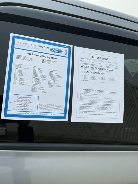 2023 Ram 2500 Big Horn Billet Silver Metallic Clearcoat. Clean CARFAX. If you live in Columbia, Ashland, Hallsville, Centralia, Jefferson City, Mexico, Fulton, Holts Summit, Moberly, Sedalia, Camdenton, Montgomery City, Wellsville, Middletown, St Louis, Kansas City or anywhere else in Missouri you can be sure that we will provide you the best value on the best selection of vehicles. With over 1,000 new, pre-owned and certified vehicles available at our Columbia location, we are your one stop when you are shopping for your next vehicle! When you decide on your vehicle, we offer top notch, on-site financial services professionals who will make qualifying for your lease or loan a simple, easy process. After the sale, our Ford Certified Service Department will keep you on the road with quality Motorcraft parts and guaranteed labor. Stop by and see us in person, give us a call or visit us at www.machensford.com Joe Machens Ford has been serving Missouri for 50 years. Our commitment to service continues.