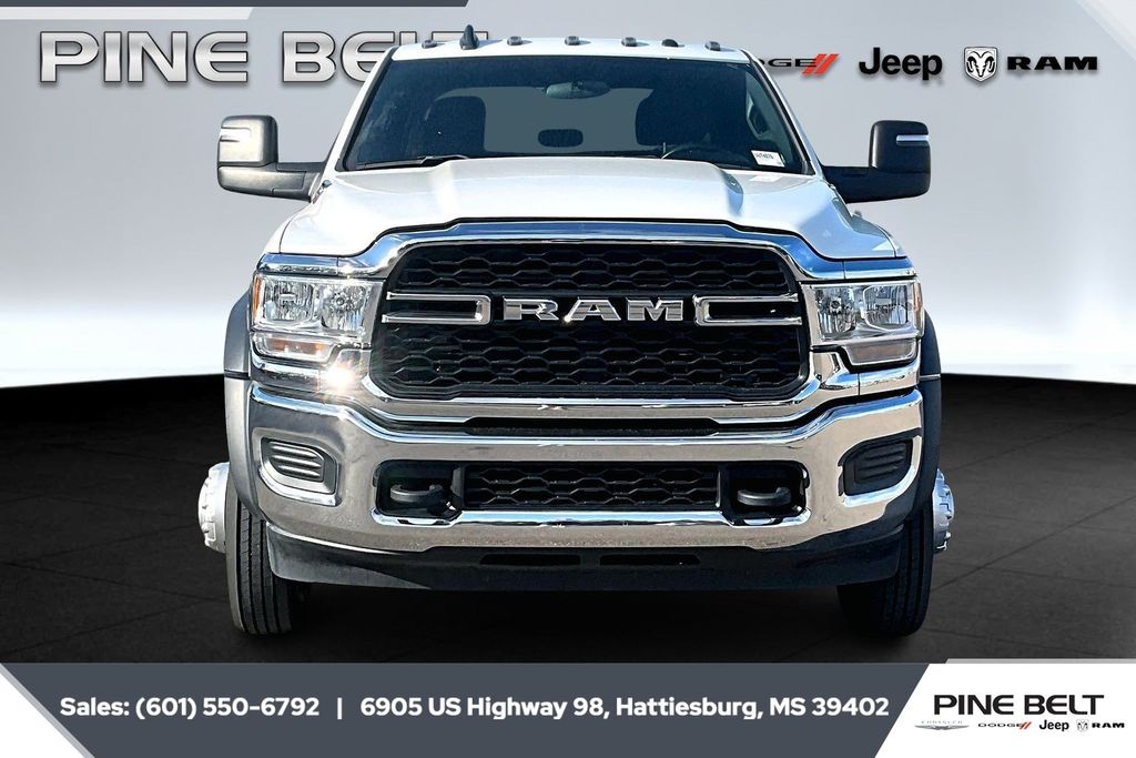 This impressive 2023 Ram 5500HD Tradesman is a workhorse built to handle your toughest jobs with ease. Equipped with the renowned Cummins 6.7L I6 Turbodiesel engine and a robust Aisin 6-speed automatic transmission, this truck delivers exceptional power and capability. Boasting a Gross Vehicle Weight Rating (GVWR) of 19,500 lbs, this Ram 5500HD is ready to tackle any challenge you throw its way. The exterior of this 5500HD Tradesman is finished in a sleek White color, complemented by the Chrome Appearance Group that includes a chrome grille surround, matte black mesh grille with chrome accents, and chrome headlamp bezels. The sturdy Chrome Tubular Side Steps provide easy access to the cabin, while the Full Size Spare Tire ensures you're prepared for any unexpected situations on the road. Step inside and you'll be greeted by the intuitive Uconnect 3 infotainment system with a 5-inch display, providing you with seamless connectivity and entertainment. The Electrical Accessory Group adds even more convenience with features like the 115V Auxiliary Power Outlet and the 400W Inverter, perfect for powering your tools or devices on the job site. Safety is a top priority, and this Ram 5500HD Tradesman delivers with a host of advanced features. The ParkView Rear Back-Up Camera helps you maneuver with confidence, while the Electronic Stability Control and 4-Wheel Disc Brakes with ABS ensure responsive handling and confident stopping power. Whether you're hauling heavy loads, towing a trailer, or tackling demanding off-road terrain, this 2023 Ram 5500HD Tradesman is built to exceed your expectations. Experience the uncompromising capability and versatility that make this truck a true workhorse in the heavy-duty segment.