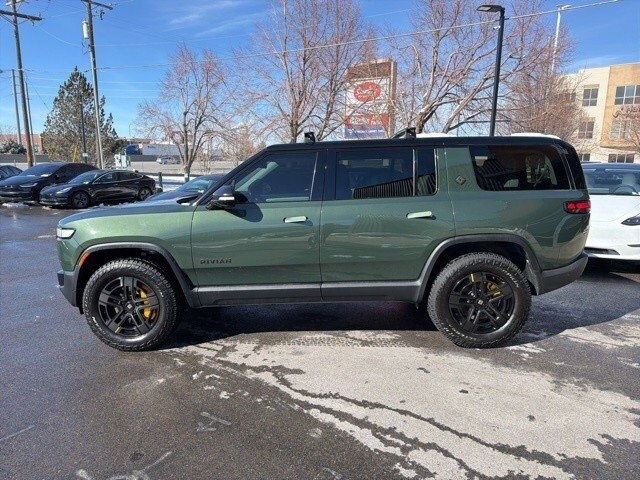 Quad-motor all-wheel drive delivers 835 horsepower and independent torque control to each wheel for unmatched traction. Estimated 321 miles of range with the Large Pack battery, balancing high performance with long-distance capability. Seats up to seven passengers with spacious three-row configuration and premium comfort. 0 to 60 mph in just 3.0 seconds, making it one of the quickest SUVs ever built. Adjustable air suspension with up to 14.9 inches of ground clearance, built for serious off-road adventures. Adventure Package interior includes vegan leather seats, natural-grain wood accents, and an all-glass panoramic roof. Massive cargo flexibility with a large front trunk (frunk), flat rear load floor, and hidden storage compartments. 16-inch center touchscreen and 12-inch digital driver display featuring a clean, intuitive interface. Dedicated off-road drive modes including Rock Crawl, Rally, Drift, and All-Terrain to tackle any landscape. Over-the-air software updates continuously enhance performance, features, and user experience. Gear Guard security system with 360-degree exterior cameras and in-bed cable lock setup. Premium Meridian audio system delivers immersive, high-fidelity sound throughout the cabin. Advanced safety features including adaptive cruise control, lane keeping, collision mitigation, and driver monitoring. Tow up to 7,700 pounds with the factory-installed towing package. Smart storage design throughout the cabin for gear, tech, and everyday essentials. Access to Rivians Adventure Network of fast chargers for easy and rapid recharging on the go. Bold, rugged exterior styling with refined finishes, designed for both urban life and wild exploration.