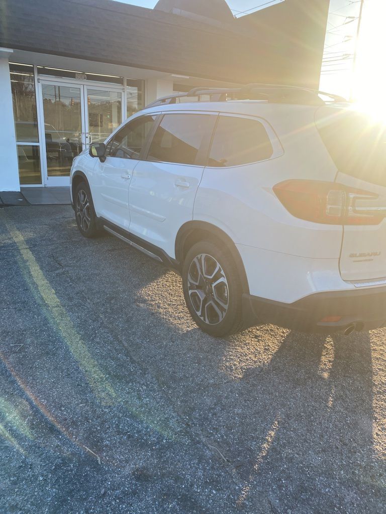 2023 Subaru Ascent Limited, one owner, recent trade, local trade, panoramic roof, blind spot monitor, rear cross traffic alert, backup camera, Eye Sight, adaptive cruise control, all wheel drive, navigation, heated seats, Harman/Kardon sound, surround view monitor system. Ascent Limited, 4D Sport Utility, AWD, Crystal White Pearl, Ivory Leather, Cabin Connect, exterior parking camera rear, panoramic power moonroof with UV/Drk tint dual glass, Subaru STARLINK 11.6" Multimedia Nav System, retractable cargo area cover, Satin Chrome power-folding exterior power mirrors, surround view monitor system, Technology Package, wheels: 20" x 7.5 J Dk Gray Alloy with machine finish. Come visit us at Southern States Automotive in Raleigh. Our staff is ready to help you purchase or lease your next vehicle. We strive to earn your trust so that you'll make Southern States your last stop when it comes to driving away with a new or used vehicle.