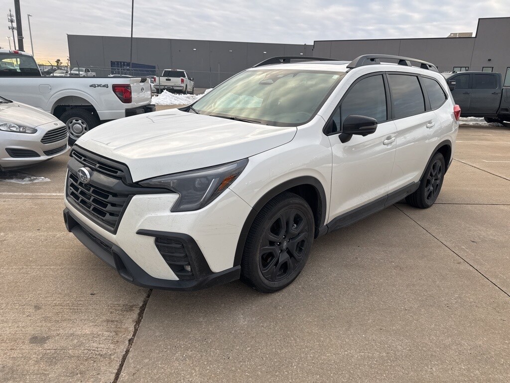 Welcome to Cavender Ford of OKC, a Cavender Auto Family dealership. This vehicle is located at 7320 Northwest Expressway, Oklahoma City, OK 73132. Here at Cavender, we build relationships based on trust and integrity to exceed your expectations in your ownership experience. Quite simply, we strive to Make Confidence Happen! So stop by and allow us to serve your automotive needs; we would love to meet you. Crystal White Pearl 2023 Subaru Ascent Onyx Edition AWD 2.4L 4-Cylinder DOHC 16V Lineartronic CVT. Cavender Certified Pre-Owned Program Built-in Benefits: Limited Powertrain Warranty for your peace of mind. Coverage includes components for engine, transmission and axles (for specific component coverage, please speak with a dealer representative). 24/7 Roadside Assistance – No out-of-pocket costs for customers towed to our dealership (if located within 30 miles), lockout assistance, jump start, fuel and fluid delivery, flat tire changes, available 365 days/year, up to $100 maximum coverage per roadside incident. A Vehicle History Report is included with every Cavender Certified Pre-Owned vehicle to offer you Confidence knowing that the vehicle you are purchasing is right for you and the road ahead. The Cavender Auto Family, proudly serving our communities since 1939, and we look forward to serving you! - Equipment: Standard Model, Navigation System, Power moonroof, 14 Speakers, 3rd Row Bench Rear Seatback Protector, 3rd row seats: bench, 3rd Row Sunshade, 4-Wheel Disc Brakes, ABS brakes, Aero Crossbar Set, Air Conditioning, Alloy wheels, AM/FM radio: SiriusXM, Auto High-beam Headlights, Auto-Dimming Exterior Mirror w/Approach Light, Auto-dimming Rear-View mirror, Automatic temperature control, Axle Ratio: 4.44, Black Chrome Rear Bumper Cover, Brake assist, Bumpers: body-color, Compass, Delay-off headlights, Driver door bin, Driver vanity mirror, Dual front impact airbags, Dual front side impact airbags, Electronic Stability Control, Emergency communication system: STARLINK Safety and Security (Subscription Required), Four wheel independent suspension, Front anti-roll bar, Front Bucket Seats, Front Center Armrest, Front dual zone A/C, Front fog lights, Front reading lights, Fully automatic headlights, Garage door transmitter: HomeLink, harman/kardon Speakers, Heated door mirrors, Heated Front Bucket Seats, Heated front seats, Heated rear seats, Heated steering wheel, HVAC memory, Illuminated entry, Knee airbag, Leather Shift Knob, Leather steering wheel, Low tire pressure warning, Memory seat, Occupant sensing airbag, Outside temperature display, Overhead airbag, Overhead console, Panic alarm, Passenger door bin, Passenger vanity mirror, Power door mirrors, Power driver seat, Power Liftgate, Power passenger seat, Power steering, Power windows, Radio data system, Radio: Subaru STARLINK 11.6" Multimedia Nav System, Rear air conditioning, Rear anti-roll bar, Rear reading lights, Rear window defroster, Rear window wiper, Reclining 3rd row seat, Remote keyless entry, Security system, Speed control, Speed-sensing steering, Split folding rear seat, Spoiler, STARLINK/Apple CarPlay/Android Auto, StarTex Upholstery, Steering wheel mounted audio controls, Tachometer, Telescoping steering wheel, Tilt steering wheel, Traction control, Trip computer, Turn signal indicator mirrors, Variably intermittent wipers.