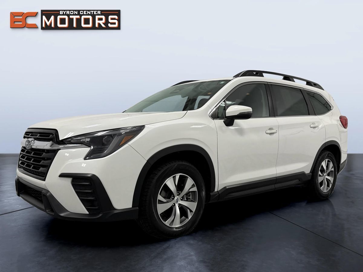 Our bold One Owner 2023 Subaru Ascent Premium AWD is ready to rise to your next challenge in Crystal White Pearl! Motivated by a TurboCharged 2.4 Liter BOXER 4 Cylinder that provides 260hp tethered to a paddle-shifted CVT. This All Wheel Drive SUV also considers pavement optional with X-MODE and active torque vectoring, and it sees nearly 26mpg on the highway. Well-equipped, our Ascent combines style and substance with steering-responsive LED headlights, raised roof rails, a power liftgate, and alloy wheels. The thoughtful layout in our Premium cabin is ready for comfortable journeys with heated/stain-resistant cloth seats, eight-way power for the driver, second-row captain's chairs, a versatile third row, a leather-wrapped steering wheel, tri-zone automatic climate control, keyless access/ignition, and upscale ivory carbon-fiber-pattern trim. Our Ascent asserts its infotainment leadership with an 11.6-inch touchscreen, WiFi compatibility, wireless Apple CarPlay/Android Auto, Bluetooth, and a six-speaker sound system. You've got plenty of room for gear, too! Priceless peace of mind comes into play with a rearview camera and smart Subaru EyeSight technologies such as blind-spot monitoring, automatic emergency braking, adaptive cruise control, lane-departure warning, and more. It's no wonder so many people love our Ascent Premium! Save this Page and Call for Availability. We Know You Will Enjoy Your Byron Center Motors Test Drive Towards Ownership!