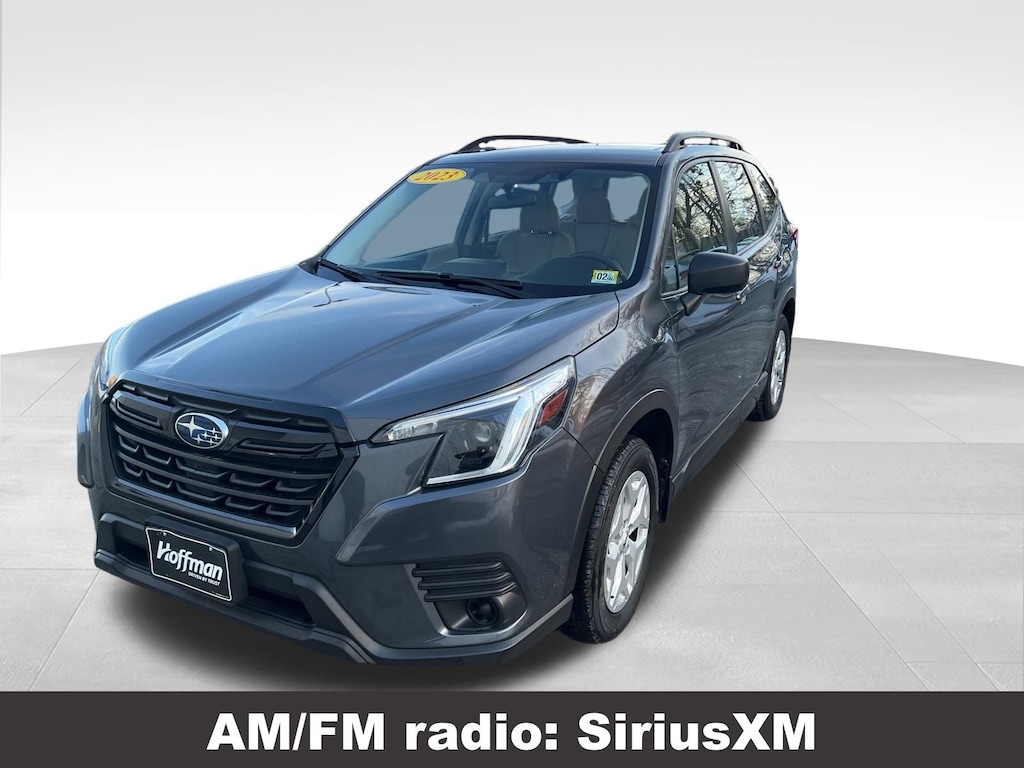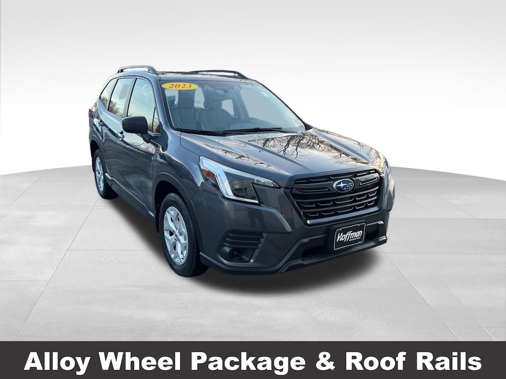 CARFAX One-Owner. Clean CARFAX. Subaru Forester 2023 4 Speakers, 4-Wheel Disc Brakes, ABS brakes, Air Conditioning, Alloy Wheel Package & Roof Rails, AM/FM radio: SiriusXM, Anti-whiplash front head restraints, Auto High-beam Headlights, Automatic temperature control, Black Finish Roof Rails, Brake assist, CD player, Driver vanity mirror, Dual front impact airbags, Dual front side impact airbags, Electronic Stability Control, Exterior Parking Camera Rear, Four wheel independent suspension, Front Bucket Seats, Front reading lights, Fully automatic headlights, Illuminated entry, Knee airbag, Low tire pressure warning, Occupant sensing airbag, Outside temperature display, Overhead airbag, Panic alarm, Passenger vanity mirror, Power door mirrors, Power steering, Power windows, Radio: Subaru Starlink 6.5" Multimedia Plus System, Rear window defroster, Rear window wiper, Remote keyless entry, Speed control, Speed-sensing steering, Split folding rear seat, STARLINK/Apple CarPlay/Android Auto, Steering wheel mounted audio controls, Tachometer, Telescoping steering wheel, Tilt steering wheel, Traction control, Trip computer, Variably intermittent wipers, Wheels: 17" x 7.0 J Silver Finish Aluminum-Alloy. 26/33 City/Highway MPG Burlington Subaru Hyundai is proud to be Burlington's premier dealership for new and used vehicles, servicing Vermont for over 25 years. In addition to a large inventory new and used Hyundai and Subaru vehicles, we also carry an extensive selection of other makes including Audi, BMW, Chevy, Chrysler, Dodge, Ford, GMC, Honda, Jeep, Nissan, Saturn, Scion, VW and more! Come test drive one today! Our friendly and experienced staff is ready to help you find your next new or used vehicle. Peace of mind Vehicle history report Title information Odometer readings Accident data (if applicable) Service history Vehicle usage Recall information (if applicable) Warranty status Free CarFax report A name you can trust Hoffman Auto Group is dedicated to your satisfaction before, during, and after your purchase. We'll go the extra mile to take care of you.