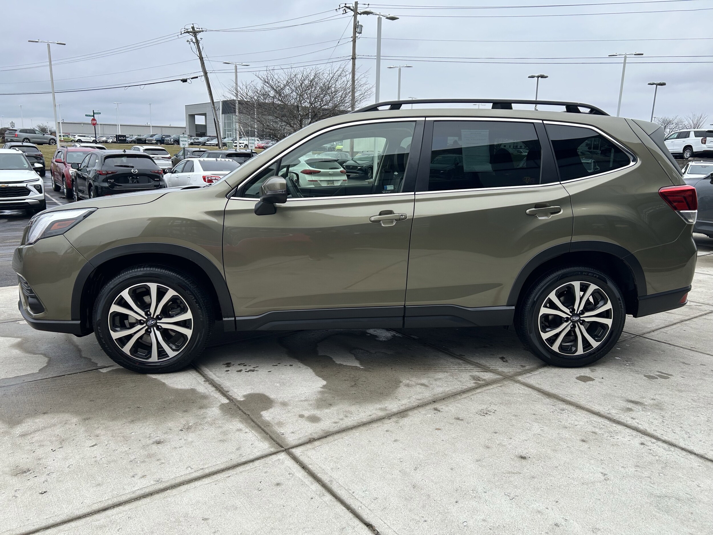 CARFAX One-Owner. Panoramic sunroof, leather seats, heated front seats, hands free Bluetooth, cruise control, local trade, MP3, Auto-Dimming Exterior Mirror with Approach Light, Auto-Dimming Mirror with Compass & HomeLink, Automatic temperature control, Front dual zone A/C, harman/kardon 9-Speaker Audio System, Heated front seats, Heated Steering Wheel, Nav & harman/kardon & RAB & Heated Steering Wheel, Panic alarm, Perforated Leather-Trimmed Upholstery, Popular Package #3, Power driver seat, Power Liftgate, Power moonroof: Panoramic, Radio: Subaru Starlink 8.0 Multimedia Nav System, Rear Bumper Cover, Rear Seatback Protector, Remote keyless entry, Reverse Automatic Braking System (RAB), Speed control, Steering wheel mounted audio controls, Telescoping steering wheel, Tilt steering wheel. 26/33 City/Highway MPG Odometer is 14801 miles below market average! Autumn Green Metallic 2023 Subaru Forester Limited AWD Lineartronic CVT 2.5L 4-Cylinder DOHC 16V. All vehicles are subject to prior sale. Price does not include applicable tax, title, license, and a $398.00 documentation fee or other fees required by law, lending institutions, and/or lessors. Vehicles shown at different locations are not currently in our inventory (not in stock) but can be made available at our location within a reasonable time after your request. The payment information provided here is not a commitment by any organization to provide credit, leases or other programs.