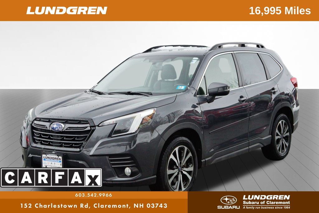 This 2023 Subaru Forester Limited comes with a clean one-owner CARFAX report and was originally purchased here and serviced here, so its history and maintenance are well known from day one. It was fully safety inspected by our Lundgren technicians again at the time of trade, ensuring its been carefully reviewed and is ready for its next owner. The Limited trim adds a more refined interior with premium materials and helpful everyday features, while still offering the practicality and all-weather confidence the Forester is known for. A well-kept SUV with a documented history and plenty to offer its next driver. It also comes with our Lundgren Cars Exclusive 6 month/6,000 mile powertrain warranty! Magnetite Gray Metallic 2023 Subaru Forester Limited 4D Sport Utility AWD Lineartronic CVT 2.5L 4-Cylinder DOHC 16V 26/33 City/Highway MPG. As part of the Subaru Love Promise, our new and used Subaru dealership is committed to doing all we can to make a positive impact in the world. We actively support a number of charities, nonprofits and organizations, so if you're looking to purchase a ride that not only fulfills your search requirements but one that you can feel good about driving, get your search for a Subaru started here on our website! Our team in Claremont, New Hampshire looks forward to providing for the needs of all our Brattleboro, Norwich and Keene neighbors. Lundgren Subaru of Claremont is dedicated to your satisfaction before, during, and after your purchase. We'll go the extra mile to take care of you.