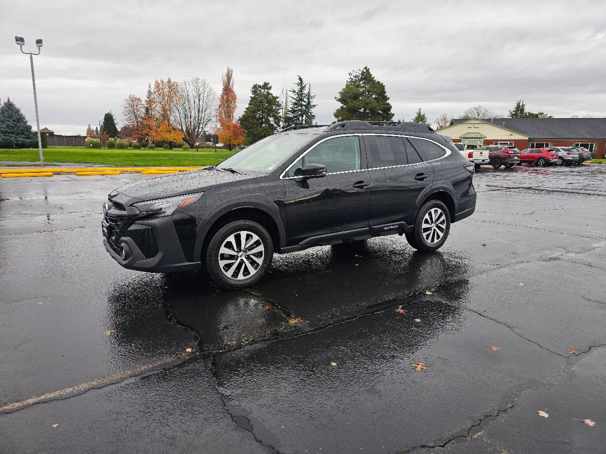 The 2023 Subaru Outback Premium CVT, enveloped in a striking Crystal Black Silica exterior, exudes a sophisticated and robust presence, perfect for both urban settings and rugged adventures. This Carfax 1-Owner vehicle is meticulously maintained and features a reliable 2.5L 4-cylinder engine, ensuring an excellent balance between power and fuel efficiency. Its all-wheel-drive system seamlessly adapts to any road condition, providing unwavering confidence and control wherever your journey takes you. Step inside to find a plush interior adorned with Slate Black cloth upholstery, offering a refined yet durable environment for both driver and passengers. The strategically designed cockpit emphasizes comfort and accessibility, with modern features like the BSD (Blind Spot Detection) and button start enhancing every drive. These features contribute to an intuitive driving experience, ensuring both safety and convenience are prioritized at all times. The Subaru Outback's Premium CVT style seamlessly combines performance with luxury, making it a standout choice for those seeking versatility in a vehicle. Its elegant yet rugged design, paired with advanced technology and all-wheel drive capabilities, makes it an ideal companion for adventurous spirits and daily commuters alike. With its commendable blend of style, functionality, and reliability, this Subaru Outback is poised to offer an unmatched driving experience for its next discerning owner.