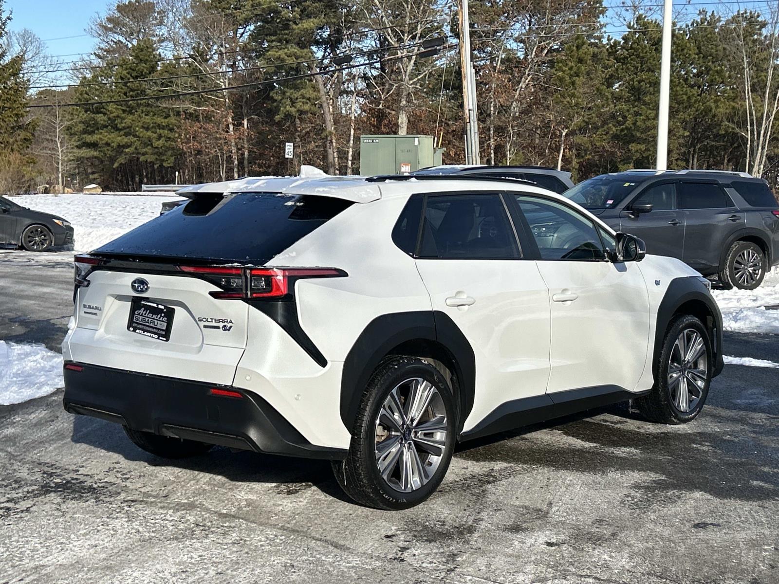 Atlantic Subaru is Proud to present this 2023 Subaru Solterra Limited in Cosmic White Pearl over Gray & Blue Premium Synthetic AWD 1-Speed Automatic Electric Motor.