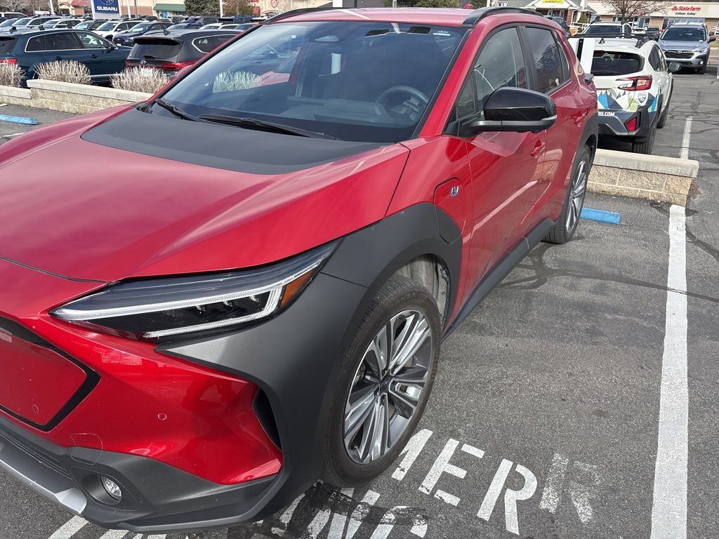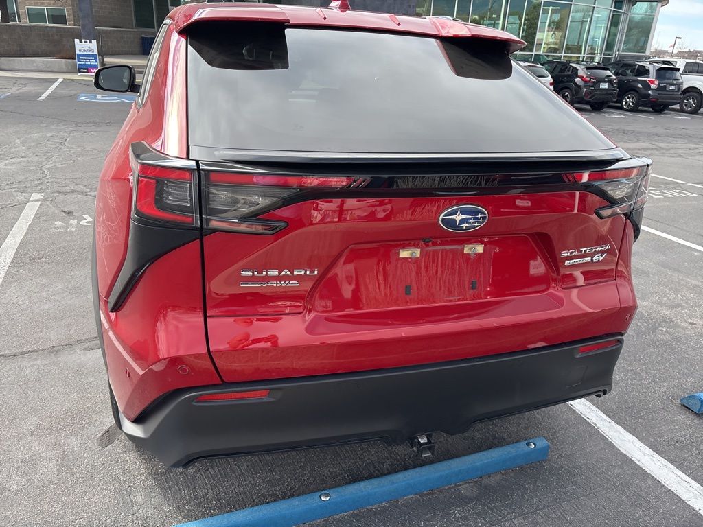 This 2023 Elemental Red Pearl Subaru Solterra Limited AWD is well equipped and includes these features and benefits. Odometer is 9864 miles below market average! 111/93 City/Highway MPG. Recent Arrival! Carfax One-Owner. AWD. 1-Speed Automatic. Electric Motor. Navigation system. Lane departure. Automatic temperature control. Emergency communication system. Wireless phone connectivity. Parking sensors. Exterior parking camera front. Exterior parking camera left. Exterior parking camera right. Exterior parking camera rear. Front dual zone A/C. Auto high-beam headlights. Blind Spot Monitor warning. Heated front seats. Heated rear seats. Memory seat. Power driver seat. Power liftgate. Alloy wheels. Rain sensing wipers.