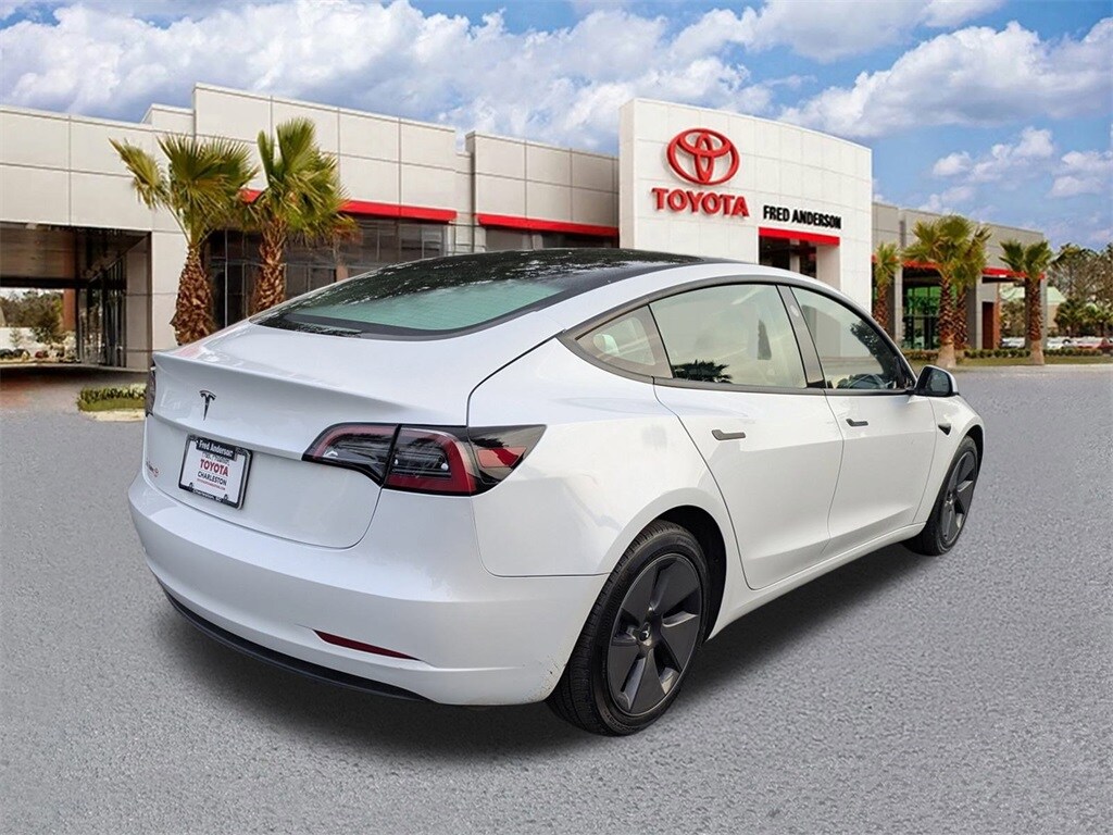 The 2023 Tesla Model 3 Base Sedan is a used electric vehicle with a battery warranty of 96 months / 100,000 miles. It features a rear-wheel drive and a 1-speed automatic transmission. The vehicle is located at Fred Anderson Toyota of Charleston and offers a combined fuel economy of 132. The odometer reading is 22,447 miles.