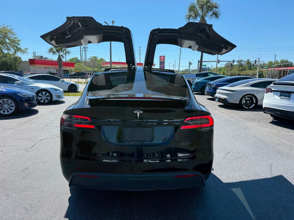 This 2023 Tesla Model X AWD SUV is available for purchase at Michaels Autos in Orlando, FL. It features a solid black exterior with a white interior and is equipped with a variety of luxury features and advanced technology. The vehicle offers a comfortable and spacious interior with seating for five, a premium audio system, and a range of driver assistance and safety features. Contact the dealership for more information or to schedule a test drive.