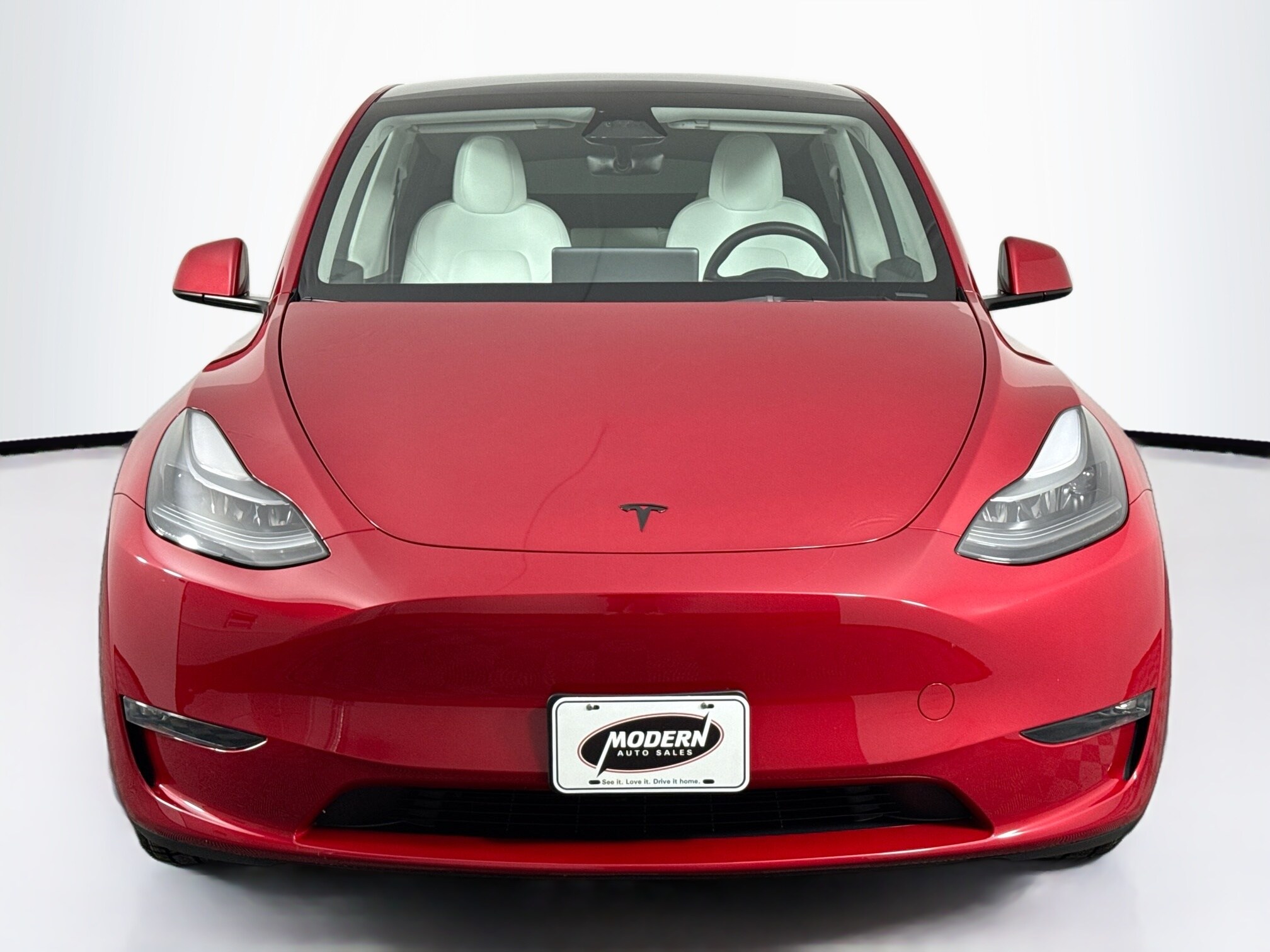 This 2023 Tesla Model Y Long Range has only 24k miles and is finished in the sought after red exterior with a white interior. In fantastic condition with AWD, strong range, and a clean modern interior. Come see why so many people are making the switch to Tesla. Schedule a test drive today or start the purchase process online! This is the one you want to make a deal on, its up to date on all service and maintenance and its available to take home today. Stop by for a closer look, you will love it. This 2023 Tesla Model Y Long Range AWD has been through our Modern Certification Process, which includes a Written Warranty, a Complete Auto Detail, Spare Keys, Owners Manuals, a Full tank of Gas, FREE Vehicle History Report, 120-Point Rigorous Inspection, access to the vehicle service records, and Live Market Pricing, so you will have all the information you need to make a confident decision. Here at Modern Auto Sales we make the purchasing process easy and hassle free. If you've been searching for just the right vehicle, as well as the right dealership, then stop your search here. Give us a call or submit a form here on this site to schedule your visit, we promise not to waste your time, and you will be given the attention you deserve.