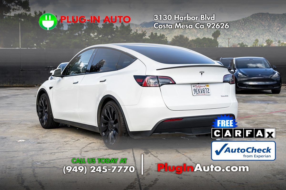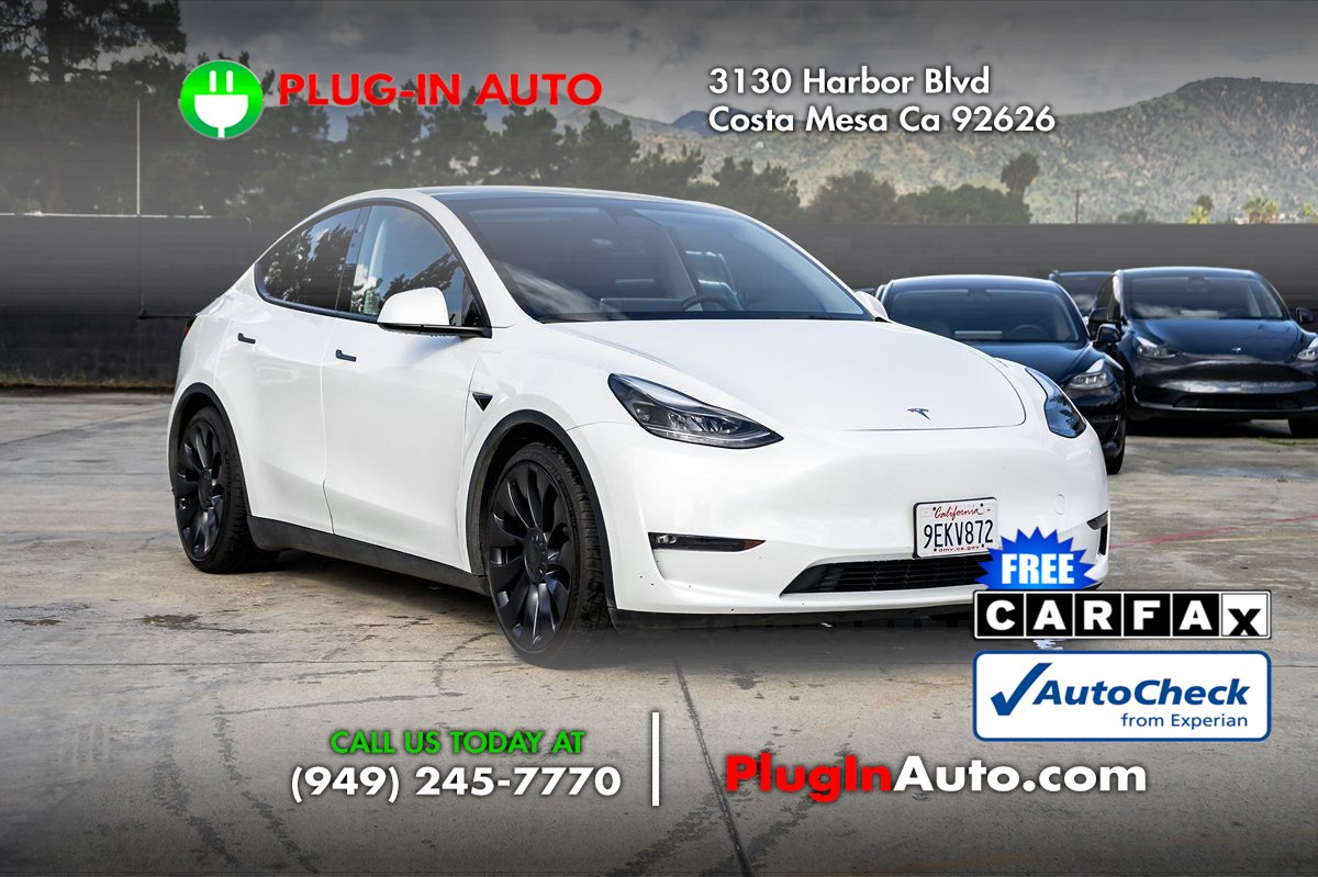 Check out this impressive 2023 Tesla Model Y Performance AWD that's electric, athletic, and aerodynamic in Pearl White Multi-Coat. Powered by Dual Electric Motors delivering a combined 455hp to a Single Speed Automatic transmission for sprinting to 60mph in only 3.5 seconds. A sporty suspension raises the bar for responsive handling, and this All Wheel Drive SUV is ready for nearly 303 miles of adventure before recharging. Streamlined style comes into the picture with our Model Y's large fixed-glass panoramic roof, bold LED lighting, fog lamps, alloy wheels, a power liftgate, and heated power mirrors. Heads will turn when this high-tech SUV goes by! Refined and clutter-free, our Performance cabin puts you comfortably in command of your days with heated leatherette front/rear seats, a power-adjustable front row, a heated multifunction steering wheel, automatic climate control, and an upgraded sound system. It's an excellent complement to infotainment resources like a 15-inch touchscreen, full-color navigation, voice control, WiFi compatibility, Bluetooth®, and wireless charging. Now that's digital convenience! Tesla is a leading name for advanced driver assistance, and it's easy to see why with AutoPilot, a surround-view camera system, blind-spot monitoring, automatic braking, and more. An EV pioneer, our Model Y Performance is for people who want more than an ordinary SUV! Save this Page and Call for Availability. We Know You Will Enjoy Your Plug In Auto Costa Mesa Test Drive Towards Ownership!