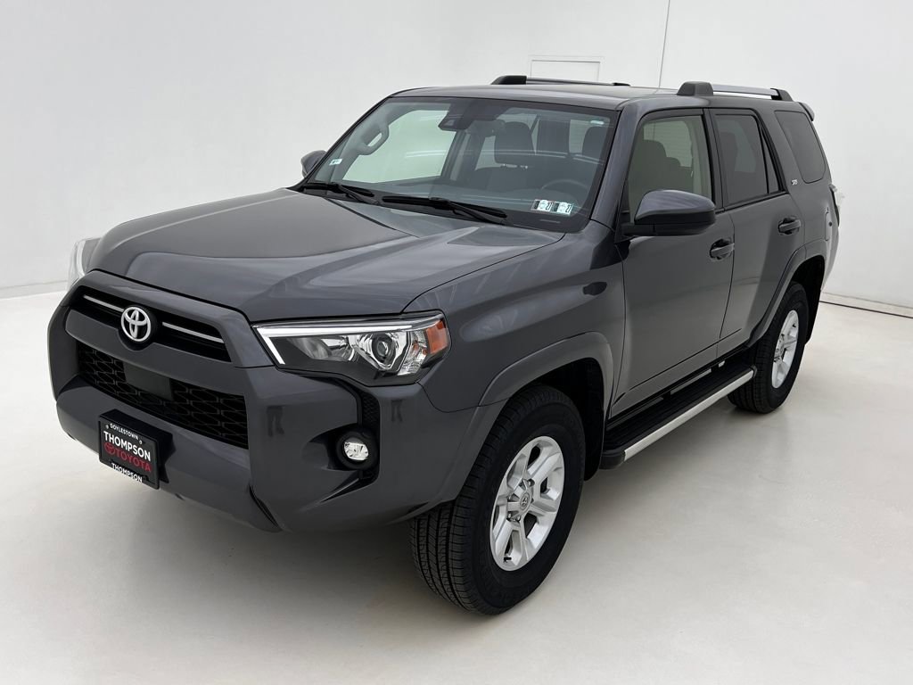 Recent Arrival! 4WD, Graphite Cloth. Thompson Toyota is pleased to offer you a True Market Priced Vehicle. This 2023 Toyota 4Runner SR5 comes equipped with notable features like: 4WD, Graphite Cloth, 17" 6-Spoke Alloy Wheels, 3.727 Axle Ratio, 4-Wheel Disc Brakes, 8 Speakers, ABS brakes, Air Conditioning, All-Weather Floor Liners/Cargo Tray (PPO) (TMS), Alloy wheels, AM/FM radio: SiriusXM, Anti-whiplash front head restraints, Apple CarPlay/Android Auto, Auto High-beam Headlights, Brake assist, Bumpers: body-color, Door Edge Guards (PPO) (TMS), Driver door bin, Driver vanity mirror, Dual front impact airbags, Dual front side impact airbags, Electronic Stability Control, Emergency communication system: Safety Connect (1-year trial), Exterior Parking Camera Rear, Fabric Seat Trim, Front anti-roll bar, Front Bucket Seats, Front Center Armrest, Front Dual USB Power Port Charger (TMS), Front fog lights, Front reading lights, Front wheel independent suspension, Heated door mirrors, Illuminated entry, Knee airbag, Leather Shift Knob, Leather steering wheel, Low tire pressure warning, Occupant sensing airbag, Outside temperature display, Overhead airbag, Overhead console, Panic alarm, Passenger door bin, Passenger vanity mirror, Power door mirrors, Power driver seat, Power steering, Power windows, Radio: Audio, Rear anti-roll bar, Rear seat center armrest, Rear window defroster, Rear window wiper, Remote keyless entry, Running Boards (PPO) (TMS), Security system, Speed control, Speed-sensing steering, Split folding rear seat, Spoiler, Steering wheel mounted audio controls, Tachometer, Telescoping steering wheel, Tilt steering wheel, Traction control, Trip computer, and Variably intermittent wipers. CARFAX One-Owner. Clean CARFAX. Magnetic Gray 2023 Toyota 4Runner SR5 4WD 5-Speed with ECT 4.0L V6 DOHC 24V. For over 55 years, Thompson Toyota Doylestown has been the flagship dealership of The Thompson Organization, a trusted name in the automotive industry. Whether you're in the market for a new Toyota or a quality used vehicle, we are dedicated to providing a customer-focused, stress-free sales experience. At Thompson Toyota, we prioritize your needs and aim to make your car-buying journey as smooth as possible. Whether you're a returning customer, a first-time buyer, or looking for top-notch vehicle service, our Doylestown, PA dealership is here to serve you. Visit us today and discover why so many in the community choose Thompson Toyota for their automotive needs.