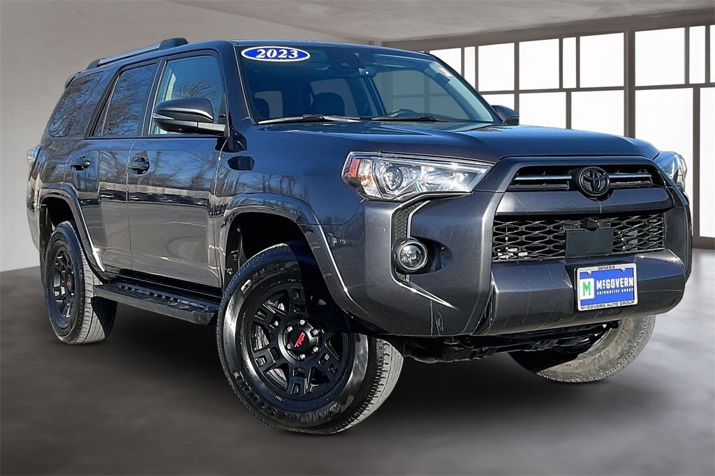 Genesis of Albany is proud to present this Pre Owned 2023 Toyota 4Runner SR5 Premium SUV. This vehicle features a Magnetic Gray Metallic exterior and a Black/Graphite interior. Well maintained, brand new tires! SR5 Premium Plus Package, 3rd row seating, trail running boards, and more. This vehicle also qualifies for our McGovern Advantage Program, consisting of a powertrain limited warranty, vehicle history, rigorous 128 point inspection, and roadside assistance. At Genesis of Albany, we are dedicated to providing customers with an exciting sales and service experience.