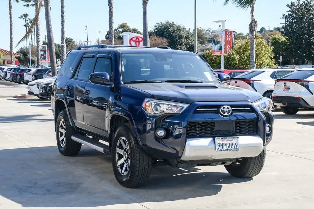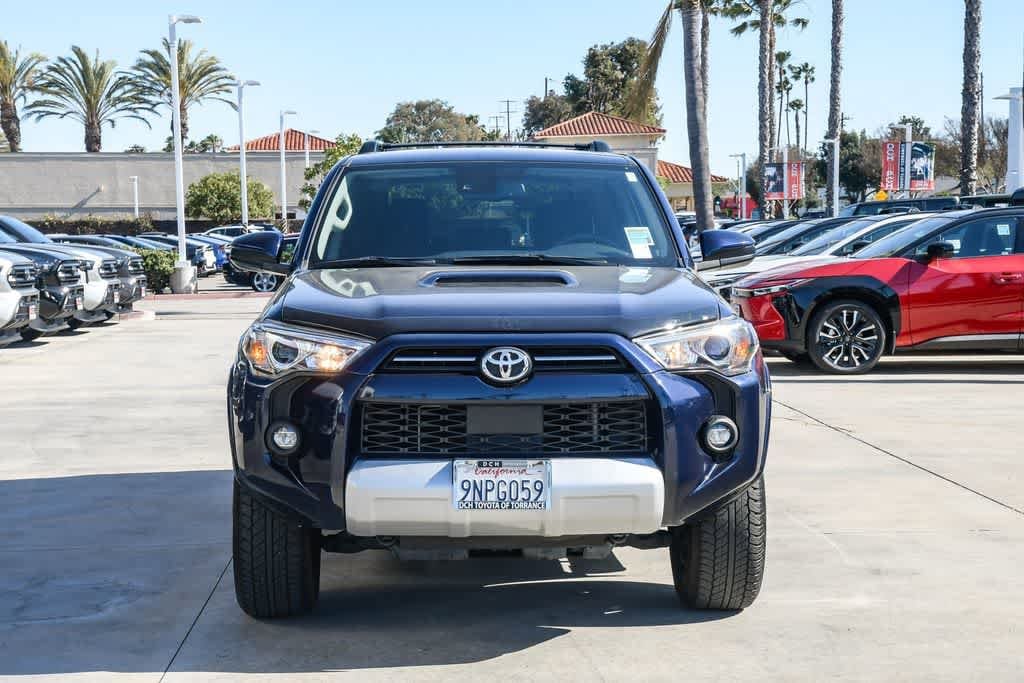 Clean CARFAX. Nautical Blue Metallic 2023 Toyota 4Runner TRD Off-Road 4WD 5-Speed with ECT 4.0L V6 DOHC 24V. DCH Toyota of Torrance has the right vehicle for you!! DCH VALUE Vehicle!!! 60-POINT INSPECTION! Recent Arrival! Why buy from DCH Toyota Torrance we offer vehicles and financing to fit any budget. Call, email or come in to find out more about this vehicle or any other pre-owned vehicle at DCH Toyota of Torrance. We Focus On Our Customers Experience, so that we exceed your expectations! Peace of mind. Vehicle history report. Title information. Odometer readings. Accident data (if applicable). Service history. Vehicle usage. Recall information (if applicable). Warranty status. Free CarFax report. A name you can trust. DCH Toyota of Torrance is dedicated to your satisfaction before, during, and after your purchase. We'll go the extra mile to take care of you.