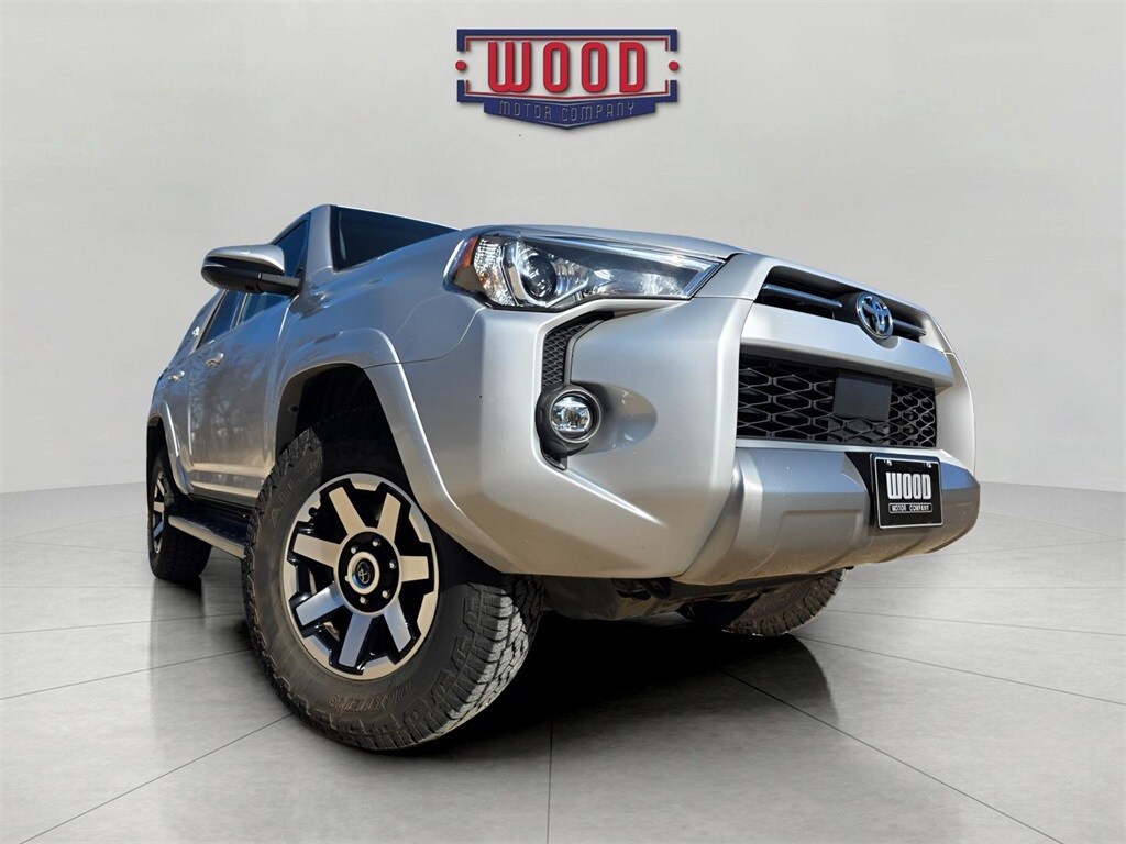 Clean CARFAX. 4Runner TRD Off-Road Premium, 4D Sport Utility, 4.0L V6 DOHC 24V, 4WD, Classic Silver Metallic, Black/Graphite w/Leather Seat Trim, Apple CarPlay/Android Auto, Electronic Stability Control, Front fog lights, Garage Door Opener, Garage door transmitter: HomeLink, Navigation System, Power driver seat, Power windows, Radio: Premium Audio w/Dynamic Navigation, Remote keyless entry, Security system, Speed control, Steering wheel mounted audio controls, Traction control. Classic Silver Metallic 2023 Toyota 4Runner TRD Off-Road Premium 4WD 5-Speed with ECT 4.0L V6 DOHC 24V. A solid name you can trust... Wood Motor.