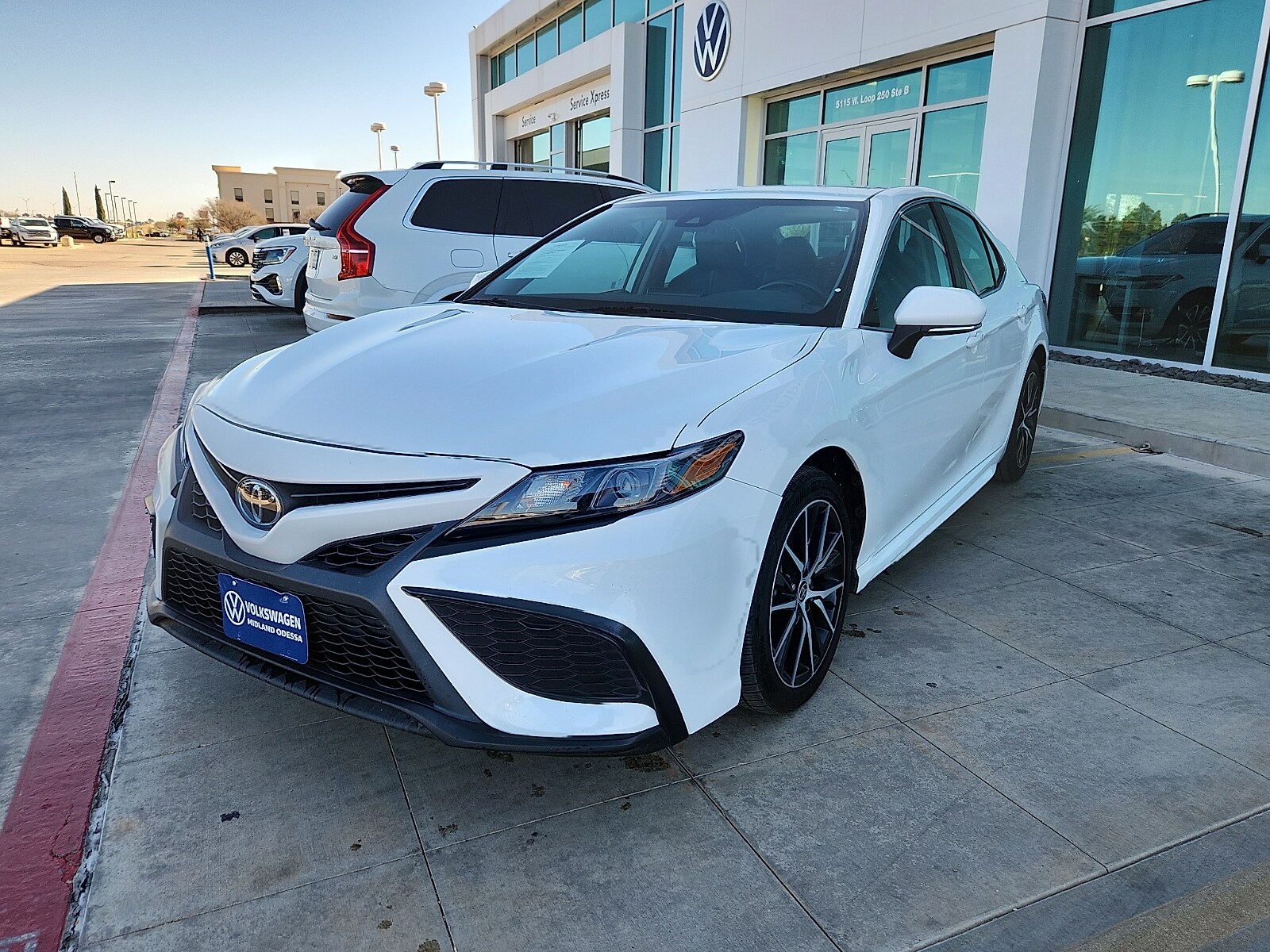 This used 2023 Toyota Camry SE Sedan is located at Volkswagen of Midland-Odessa. It features a comfortable interior with Ash seating and an Ice Cap exterior. The vehicle is equipped with a 2.5L I-4 DOHC 16-Valve Engine and offers a smooth driving experience with front-wheel drive and an 8 speed automatic transmission. Enjoy a blend of technology and safety with features like Apple CarPlay, Android Auto, and Toyota Safety Sense 2.5. This Camry is ready for your next journey, providing a blend of comfort, efficiency, and advanced safety features.