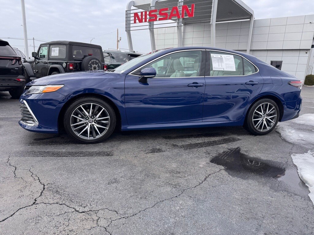 Clean Carfax!, one owner!, Carfax one owner!, cooled seats!, Apple CarPlay, Android Auto, Bluetooth, blind spot monitoring, alloy wheels, backup camera, comfort package, convenience package, heated seats, leather seats, moonroof, navigation system, parking sensors, premium audio package, premium sound package, premium wheels, sunroof/moonroof, Camry XLE, 4D Sedan, 2.5L I4 DOHC 16V, 8-Speed Automatic, FWD, Reservoir Blue, Macadamia with Perforated Leather Seat Trim, alloy wheels, Apple CarPlay/Android Auto, auto high-beam headlights, automatic temperature control, cold weather package, delay-off headlights, exterior parking camera rear, front bucket seats, front dual zone A/C, fully automatic headlights, heated front seats, heated steering wheel, multi-stage heated front bucket seats, navigation package, navigation system, outside temperature display, perforated leather seat trim, preferred accessory package with all weather liners (TMS), radio: premium audio with JBL. Recent arrival! 2023 Toyota Camry XLE 4D Sedan FWD 2.5L I4 DOHC 16V 8-Speed Automatic. At Jim Johnson Nissan, we take pride in our motto, "whatever it takes." Our team is always willing to go the extra mile to leave you satisfied. Clean Carfax. Carfax one-owner. Reservoir Blue. 27/38 City/Highway MPG.