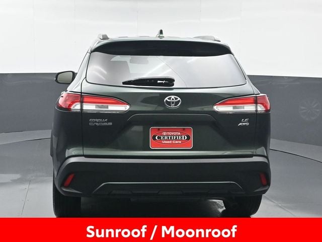 Discover the exceptional value and quality of this 2023 Toyota Corolla Cross LE. With its striking Green exterior, this one-owner, low-mileage vehicle is a testament to Toyota's renowned reliability and craftsmanship. Powered by a 2.0L I4 PDI DOHC 16V LEV3-SULEV30 169hp engine paired with a CVT and AWD, this Corolla Cross delivers an impressive 29 MPG in the city and 32 MPG on the highway, making it an exceptional choice for your daily commute or weekend adventures. As a Toyota Gold Certified pre-owned vehicle, this Corolla Cross comes with an unparalleled peace of mind. Enjoy the confidence of a 160-Point Inspection, Roadside Assistance, a $0 Warranty Deductible, a Transferable Warranty, and comprehensive coverage, including a 12-Month/12,000-Mile Limited Warranty and an 84-Month/100,000-Mile Powertrain Limited Warranty. This vehicle is backed by Toyota's renowned reliability and can be serviced at over 1,400 dealerships across the continental U.S. and Canada. Experience the perfect blend of style, performance, and value in this 2023 Toyota Corolla Cross LE. With its impressive list of features and comprehensive warranty coverage, this exceptional vehicle is an outstanding choice for discerning buyers. Visit our showroom today and let us demonstrate why this Corolla Cross is the perfect fit for your lifestyle and budget.