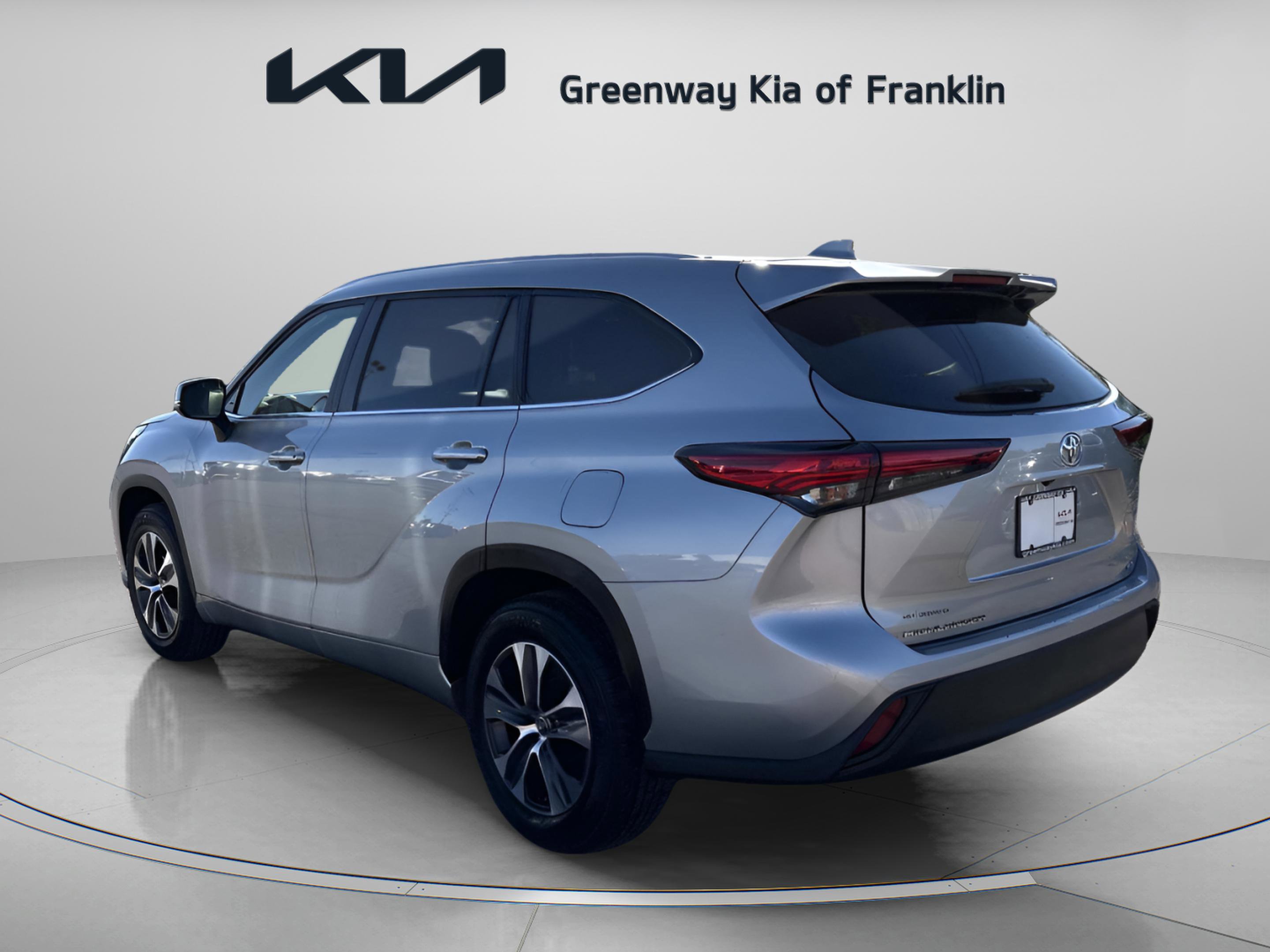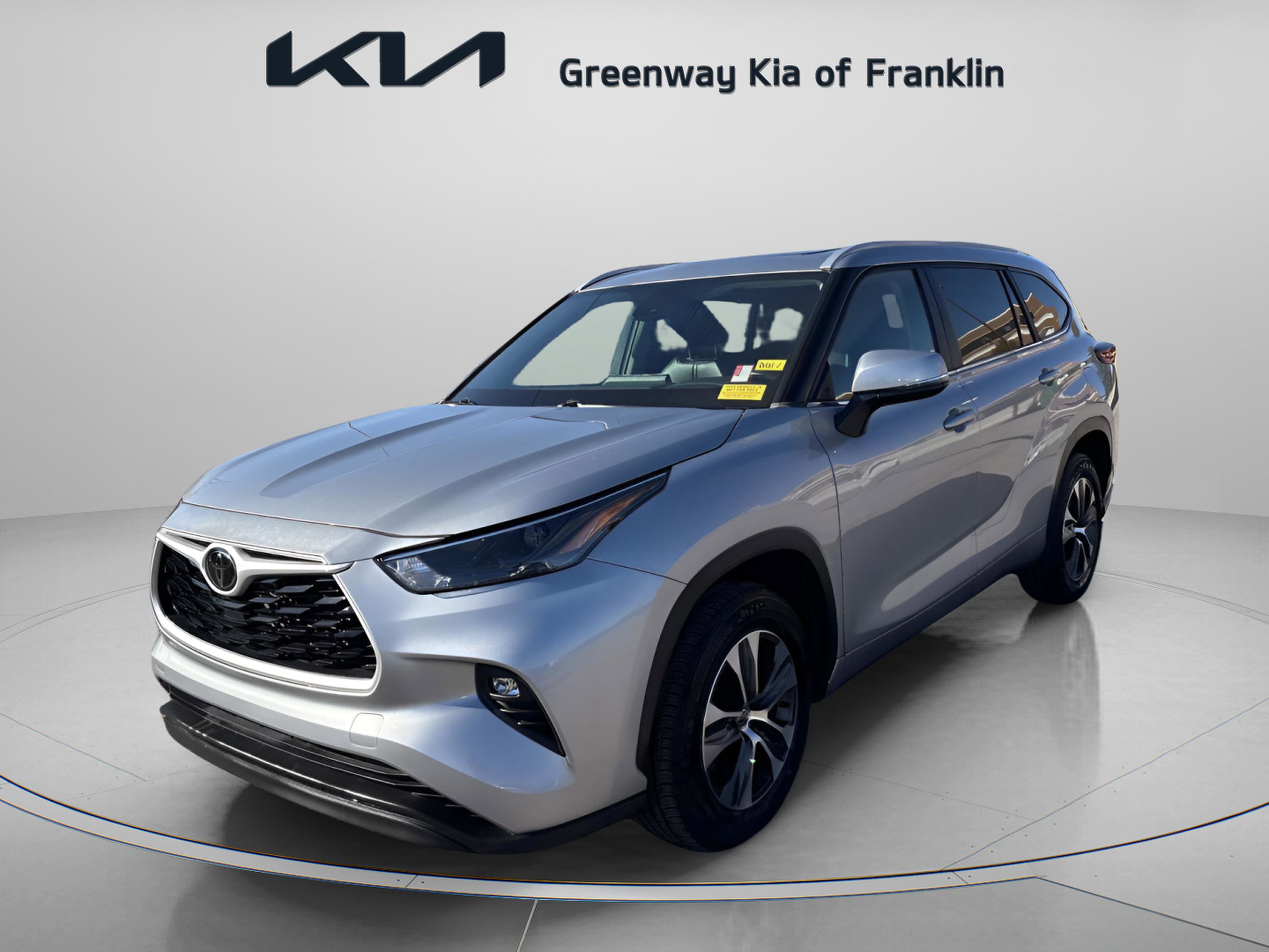 2023 Toyota Highlander XLE Silver FWD 4D Sport Utility. 3rd row seats: split-bench, ABS brakes, Active Cruise Control, Alloy wheels, Apple CarPlay/Android Auto, Electronic Stability Control, Front dual zone A/C, Heated door mirrors, Heated Front Bucket Seats, Heated front seats, Illuminated entry, Low tire pressure warning, Power Liftgate, Power moonroof, Radio: 8 Toyota Audio Multimedia, Remote keyless entry, Traction control, Wheels: 18 Machined-Finish Alloy. CARFAX One-Owner. All preowned vehicles have a 125 point inspection. To make sure you are purchasing a safe and reliable vehicle. Call 615-224-7973 for your best deal today! This vehicle has been through an extensive multi point inspection. All necessary services have been done for the appropriate mileage interval as deemed necessary. We have also reconditioned this automobile inside and out, so as to provide you with as near a new vehicle experience as can be expected from an auto of this year and mileage. Buy with confidence. Locally operated. Get Pre-Approved at greenwaykiafranklin.com. Free CARFAX report. Large Nashville, Tennessee area Used Car Super Store. Call Today.