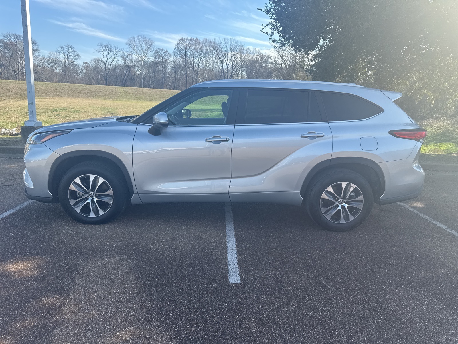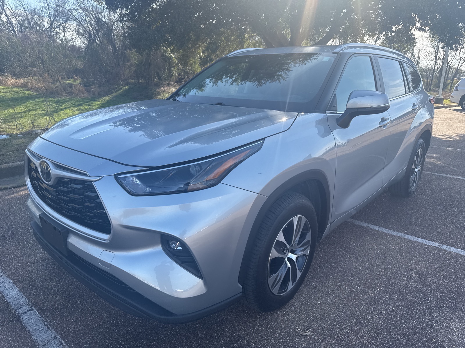 CARFAX One-Owner. Celestial Silver 2023 Toyota Highlander XLE 2.4L I4 PDI Turbocharged DOHC 16V LEV3-SULEV30 265hp 8-Speed Automatic 3.329 Axle Ratio, 3rd row seats: split-bench, 4-Wheel Disc Brakes, 6 Speakers, ABS brakes, Air Conditioning, Alloy wheels, AM/FM radio: SiriusXM, Apple CarPlay/Android Auto, Auto High-beam Headlights, Auto-dimming Rear-View mirror, Automatic temperature control, Brake assist, Bumpers: body-color, Delay-off headlights, Driver door bin, Driver vanity mirror, Dual front impact airbags, Dual front side impact airbags, Electronic Stability Control, Emergency communication system: Safety Connect (up to 10-year trial subscription), Exterior Parking Camera Rear, Four wheel independent suspension, Front anti-roll bar, Front Bucket Seats, Front Center Armrest, Front dual zone A/C, Front fog lights, Front reading lights, Fully automatic headlights, Garage door transmitter: HomeLink, Heated door mirrors, Heated Front Bucket Seats, Heated front seats, Illuminated entry, Knee airbag, Leather Shift Knob, Leather steering wheel, Low tire pressure warning, Occupant sensing airbag, Outside temperature display, Overhead airbag, Overhead console, Panic alarm, Passenger door bin, Passenger vanity mirror, Power door mirrors, Power driver seat, Power Liftgate, Power moonroof, Power passenger seat, Power steering, Power windows, Radio: 8" Toyota Audio Multimedia, Rear air conditioning, Rear anti-roll bar, Rear reading lights, Rear window defroster, Rear window wiper, Reclining 3rd row seat, Remote keyless entry, Roof rack: rails only, Security system, SofTex Seat Trim, Speed control, Speed-sensing steering, Split folding rear seat, Spoiler, Steering wheel mounted audio controls, Tachometer, Telescoping steering wheel, Tilt steering wheel, Traction control, Trip computer, Turn signal indicator mirrors, Variably intermittent wipers, Wheels: 18" Machined-Finish Alloy. Recent Arrival! 22/29 City/Highway MPG