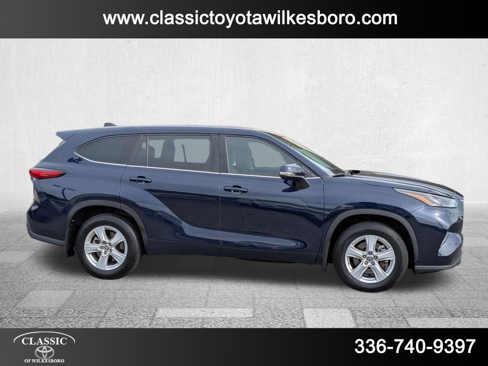 This 2023 Toyota Highlander L, has a Blueprint exterior and a Graphite interior color. 44,111 miles. Stock Number PT4575. You can connect with us by calling 336-566-2022. This vehicle is offered by Classic Toyota of Wilkesboro and we are located at 1511 W D St North Wilkesboro NC 28659. At Classic Toyota of Wilkesboro, we're here to Serve you! Our staff is 100% dedicated to customer satisfaction and we understand that you need clear, transparent information throughout the car buying process. With our live market pricing philosophy, we offer the right cars at the right price and the transparency to back it up! Classic Toyota of Wilkesboro is located at 1511 W D St North Wilkesboro NC 28659. Call us at 336-566-2022.