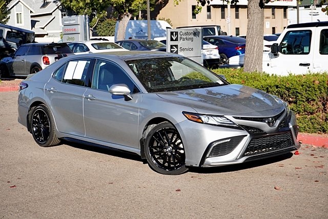 This 2023 Silver Toyota Camry XSE FWD is well equipped and includes these features and benefits: Black Leather, 4-Wheel Disc Brakes, 6 Speakers, ABS brakes, Air Conditioning, Alloy wheels, AM/FM radio: SiriusXM, Apple CarPlay/Android Auto, Auto High-beam Headlights, Auto-dimming Rear-View mirror, Automatic temperature control, Brake assist, Bumpers: body-color, Delay-off headlights, Driver door bin, Driver vanity mirror, Dual front impact airbags, Dual front side impact airbags, Electronic Stability Control, Emergency communication system: Safety Connect (1-year trial), Exterior Parking Camera Rear, Four wheel independent suspension, Front anti-roll bar, Front Bucket Seats, Front Center Armrest, Front dual zone A/C, Front reading lights, Fully automatic headlights, Garage door transmitter: HomeLink, Heated door mirrors, Heated front seats, Illuminated entry, Knee airbag, Leather steering wheel, Low tire pressure warning, Multi-Stage Heated Front Bucket Seats, Occupant sensing airbag, Outside temperature display, Overhead airbag, Overhead console, Panic alarm, Passenger door bin, Passenger vanity mirror, Perforated Leather Seat Trim, Power door mirrors, Power driver seat, Power passenger seat, Power steering, Power windows, Radio data system, Radio: Audio Plus, Rear anti-roll bar, Rear reading lights, Rear seat center armrest, Rear side impact airbag, Rear window defroster, Remote keyless entry, Security system, Speed control, Speed-sensing steering, Split folding rear seat, Spoiler, Steering wheel mounted audio controls, Tachometer, Telescoping steering wheel, Tilt steering wheel, Traction control, Trip computer, Turn signal indicator mirrors, Variably intermittent wipers, and Wheels: 8.0J x 19" Alloy. Prices shown are manufacturer suggested retail price only and do not include taxes, license, documentation fee, smog fee, dealer installed options and other applicable charges. Vehicles are subject to prior sale. Vehicle information is based on standard equipment and may vary from vehicle to vehicle. Not responsible for typographical errors. CARFAX One-Owner. Priced below KBB Fair Purchase Price!