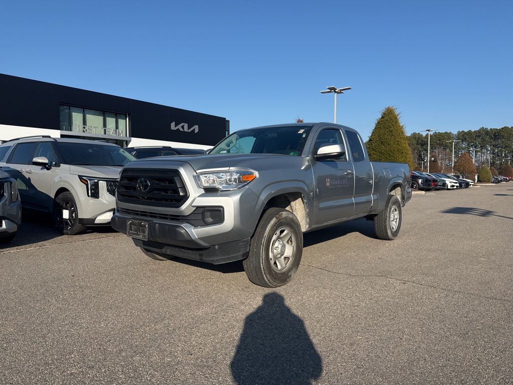 Recent Arrival! Priced below KBB Fair Purchase Price! CARFAX One-Owner. Clean CARFAX. Silver 2023 Toyota Tacoma SR. At First Team Kia Enjoy Your Ride with: No cost oil changes forever! No cost VA state inspections forever! No cost towing forever! 4WD, 16" styled steel wheels, 6 speakers, ABS brakes, active cruise control, air conditioning, AM/FM radio: SiriusXM, brake assist, driver door bin, electronic stability control, exterior parking camera rear, front bucket seats, front center armrest, front reading lights, front seats, heated door mirrors, illuminated entry, low tire pressure warning, overhead console, passenger door bin, power door mirrors, power steering, power windows, speed control, speed-sensing steering, steering wheel mounted audio controls, telescoping steering wheel, tilt steering wheel, traction control, variably intermittent wipers.