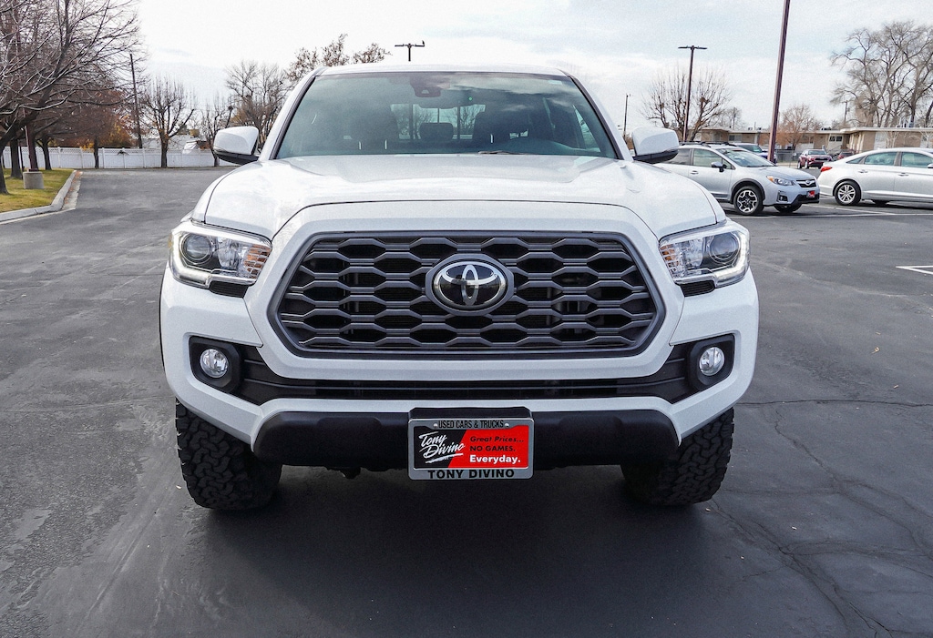 Vehicle located at new Layton location! Tony Divino Used Cars And Trucks 385-493-1501 1573 N. Main Street Layton Utah 84041 Boasts 22 Highway MPG and 18 City MPG! This Toyota Tacoma 4WD boasts a Regular Unleaded V-6 3.5 L/211 engine powering this Automatic transmission. TRD Off Road Package -inc: leather shift lever and knob and Off Road graphic, Power Color Turn Mirror -inc: Mesh Front Grille, LED Daytime Running Lights & Fog Lights. This Toyota Tacoma 4WD Features the Following Options Wi-Fi Connect with up to 2GB within 3-month trial Mobile Hotspot Internet Access, Wheels: 16 Machined Contrast Alloy, Variable Intermittent Wipers, Vanity w/Driver And Passenger Auxiliary Mirror, Trip computer, Transmission: 6-Speed ECT Automatic, Transmission w/Oil Cooler, Trailer Wiring Harness, Toyota Safety Sense P (TSS-P), Tires: P265/70R16 All-Season. Stop By Today Come in for a quick visit at Tony Divino Toyota, 777 West Riverdale Rd, Riverdale, UT 84405 to claim your Toyota Tacoma 4WD!