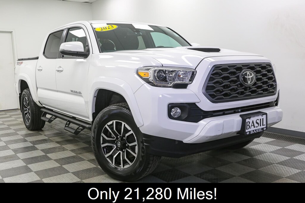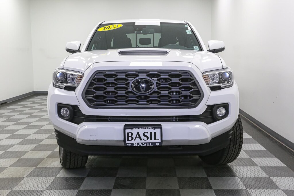 Thank you for choosing Basil Toyota, this Ice Cap 2023 Toyota Tacoma TRD Sport is a great choice! Check out the following: One Owner! No Accidents! City 18/ Hwy 22. TRD Sport Package. Forward collision mitigation - Forward thinking. You look away for just a second and suddenly the vehicle in front of you has stopped. That's when the forward collision mitigation system comes to life. When it senses an impending impact, it will activate a combination of features to help prevent or reduce the severity of an accident. Forward collision mitigation is always looking ahead. Pedestrian impact prevention - An extra step toward safety. Pedestrians don't always stop, look, and listen, but with Pedestrian Impact Prevention, your vehicle is equipped to better see them and avoid them. This system constantly monitors the road ahead to identify and track pedestrians. It projects that image to an interior display screen, AND should an impact become likely, Pedestrian impact prevention takes steps to avoid a collision. Rear camera - Watching your back! The rear camera helps you see obstacles and hazards you otherwise couldn't by showing enhanced images of what is behind you. The rear camera is an extra set of eyes that's both convenient and safe. Smart device mirroring - Smartphone, meet smart car. You can control your device through your vehicle's infotainment system. Smart device mirroring brings together safety and convenience by making it easier to find what you're looking for while keeping your eyes on the road. Mobile hotspot - WiFi on the fly. Connect your devices to the Internet through your vehicle's private mobile hotspot and take the internet wherever your journey takes you, without eating up your data allowance. Find the hotspot with mobile hotspot.