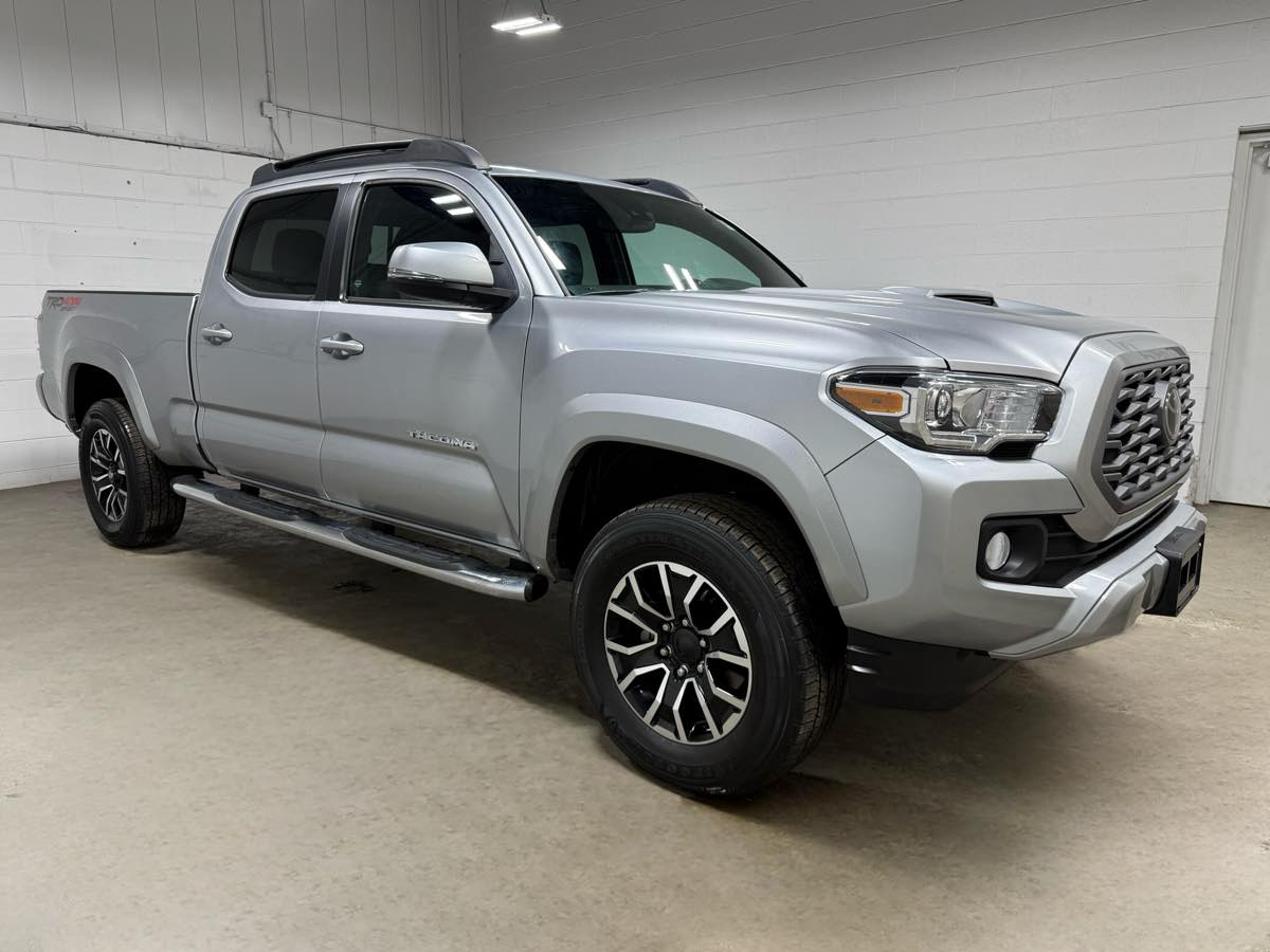 If you are a picky buyer, and are only looking for a close to new condition used truck, then look no further. Spotless one owner 2023 Toyota Tacoma Double Cab TRD Sport Long Bed 4x4, super hard to find, with the beloved last year production 3.5L V6 Toyota engine! Perfect one owner history with no damage or accidents ever. Comes with both keys. Celestial Silver Metallic, with the factory 8 inch color touchscreen with navigation system, premium audio package, tow package with hitch, limited slip differential, factory OEM running boards, TRD sport package, sport performance hood, 17inch sport alloy wheels, sport suspension, power seat, Apple CarPlay, Android Auto, USB, satellite radio, streaming Bluetooth, wireless charging, Toyota safety sense, rear view camera with park assist, dynamic adaptive cruise control, lane departure alert, auto high beams, collision warning system with pedestrian detection and so much more. Will be sold fully serviced and carries the full balance of the Toyota factory warranty for your peace of mind. Carfax Certified for your protection!