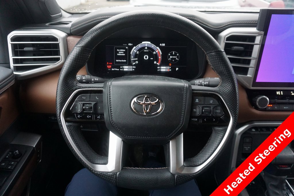 Used 2023 Toyota Tundra 1794 Edition 4WD for sale near Battle Creek, Kalamazoo, and Southwest Michigan. Low mileage and well-equipped, offering strong value compared to similar full-size trucks on the market. If you're searching for a luxury full-size pickup with serious capability, this Tundra deserves a closer look. Equipped with premium features including 1794 Edition leather interior, TRD Off-Road suspension, and advanced Toyota Safety Sense technology. Available now at Sunshine Toyota serving Battle Creek, Kalamazoo, Portage, and surrounding Michigan communities. This 2023 Toyota Tundra 1794 Edition CrewMax 4WD delivers a premium combination of power, refinement, and off-road capability. With only 26,774 miles, this truck offers near-new condition with the durability and reputation Toyota trucks are known for. Under the hood is Toyota’s 3.4L twin-turbo V6 paired with a 10-speed automatic transmission, providing impressive towing capability and smooth performance for both work and everyday driving. The 1794 Edition is one of the most sought-after trims in the Tundra lineup, featuring premium tan leather interior, upscale finishes, and advanced technology throughout the cabin. This truck also includes the TRD Off-Road package, adding upgraded suspension with Bilstein shocks and enhanced traction control for confident driving both on and off pavement.