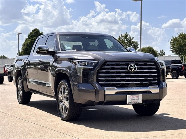 Navigation/GPS, Alloy Wheels, Bluetooth, Sunroof/Moonroof, Leather, 4X4/4WD, Tundra Hybrid Capstone, 4D Crew Cab, 3.4L V6, 10-Speed Automatic, 4WD, Black/White Leather. Recent Arrival! Welcome to Vandergriff Toyota! Come visit our Dealership today. Our showroom, amenities, and service drive are open extended hours for your convenience. Not to mention a HUGE selection of New & Pre-Owned vehicles will make Vandergriff Toyota your premiere choice for Toyota dealerships in the Dallas/Fort Worth area. Stop by and see why we're where "DFW Shops for Used Cars!!" Customer Requested and Dealer Added Options are extra. As the leading Toyota dealer in Arlington, our name has become synonymous with honesty and integrity. We have grown into one of the largest Toyota dealers in the Dallas and Fort Worth area. We are proud to be integral members of the Dallas-Fort Worth community, where we serve the entire DFW Metroplex, including Carrollton, North Richland Hills, Irving, Mansfield, Frisco, Richardson, Plano, Grand Prairie, Grapevine and the entire North Texas area. Our outstanding staff of dedicated sales professionals is here to help you find the perfect new car for you and your family. Visit us today and see why our commitment to customer service, our large selection of new and used vehicles and reliable service have made Vandergriff.