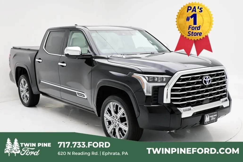 PA's #1 Ford Store. Recent Arrival! 2023 Toyota Tundra Hybrid Capstone 4WD Black. Odometer is 4819 miles below market average! PA's #1 Ford Store * All of our cars go through our Twin Pine Certified Process * . Please verify any information in question with Twin Pine Ford (717)-733-FORD. Twin Pine Ford will only accept outside 3rd Party financing in the event we cannot match customers Pre-Approved rate. (See dealer for details.) Disclaimer: We are not able to finance customers from the following states: Alaska, Arizona, California, Iowa, Kansas, Minnesota, North Dakota, South Dakota, Oklahoma, Ohio and/or Tennessee. However, these customers are welcome to secure their own financing.
