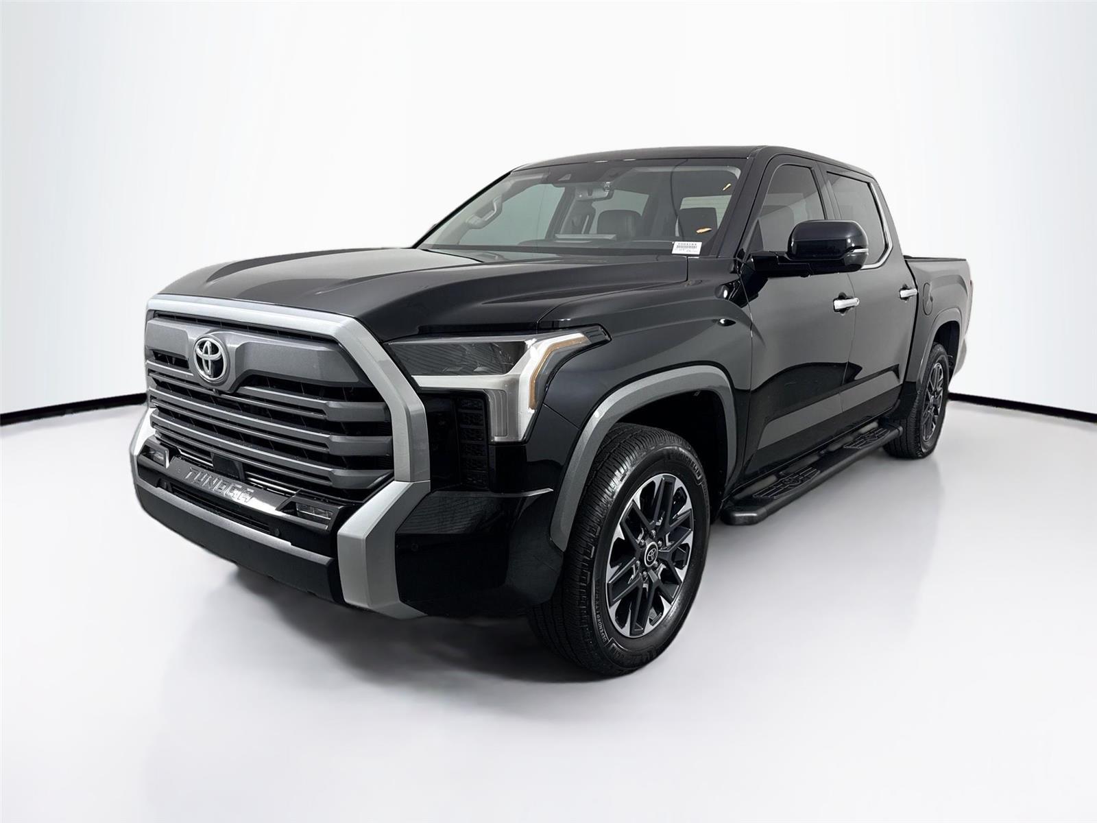 This 2023 Toyota Tundra Limited, has a Midnight Black Metallic exterior and a Black interior color. 54,191 miles. Stock Number T094193 is currently offered at $50,000. This 2023 Toyota Tundra Limited 4x4 is ready for anything-from tough jobs to weekend escapes. With four-wheel drive, it handles rough roads and bad weather with ease. It's equipped with smart upgrades like a panoramic view monitor for easier parking and trailering, load-leveling rear height control to keep things balanced when hauling, and an integrated dashcam for added peace of mind. Inside, you'll enjoy comfort features like heated and ventilated seats and a big touchscreen. If you need a truck that's tough, tech-savvy, and built for real-life use, this Tundra checks every box.